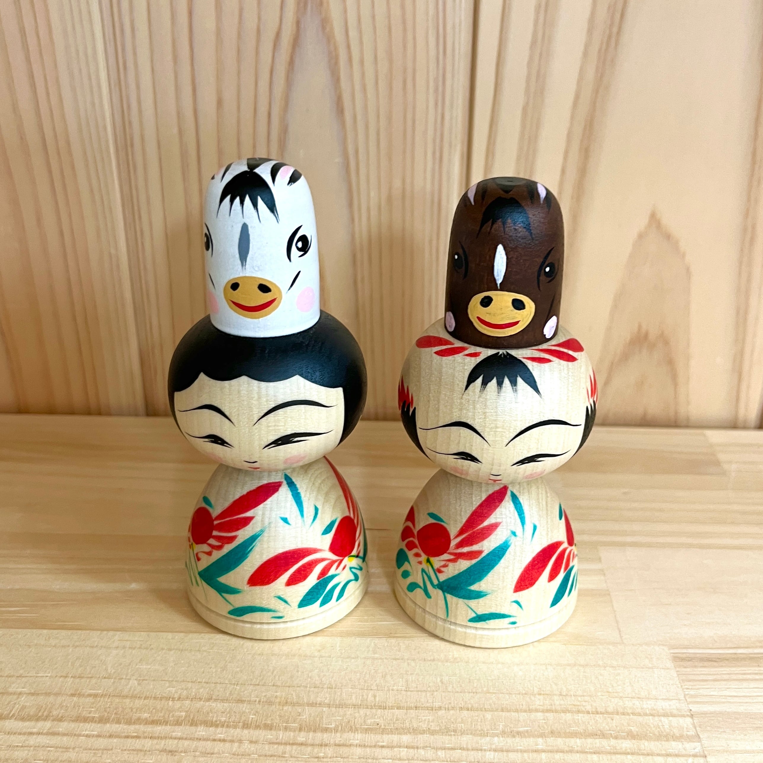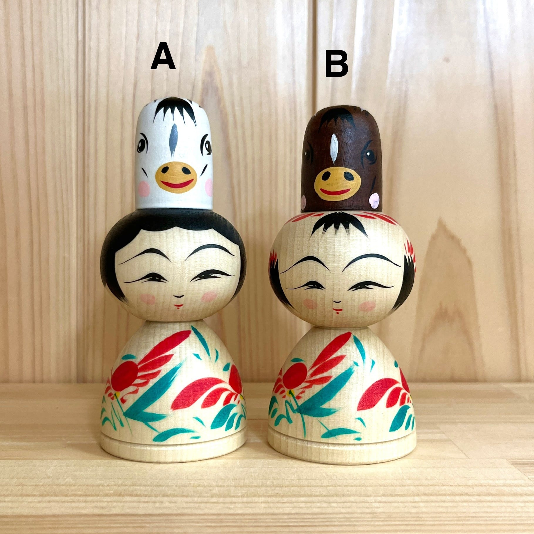 【平賀輝幸工人:作並系】干支こけし えじこ 馬:約12㎝ N6TeH-212 N6TeH-218