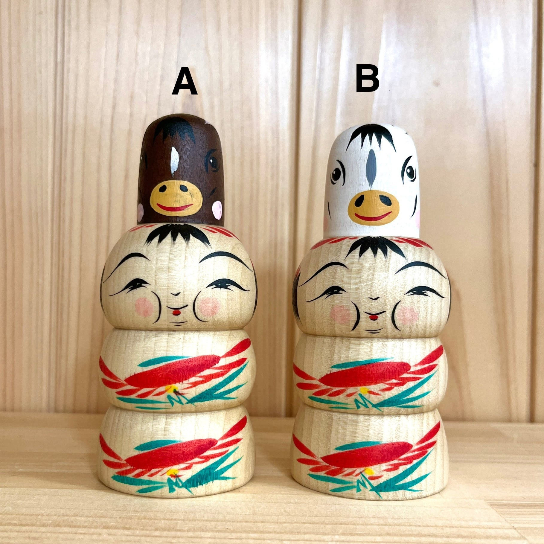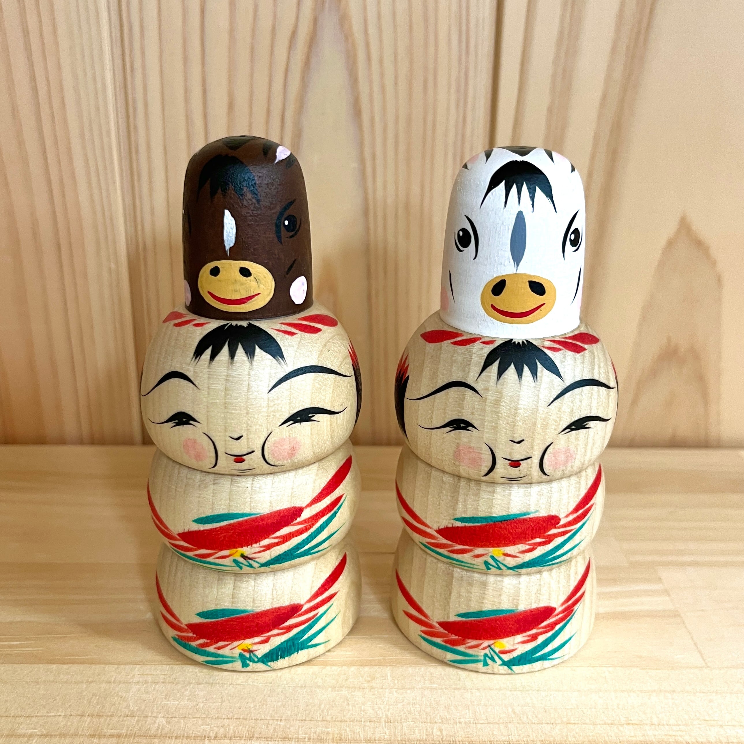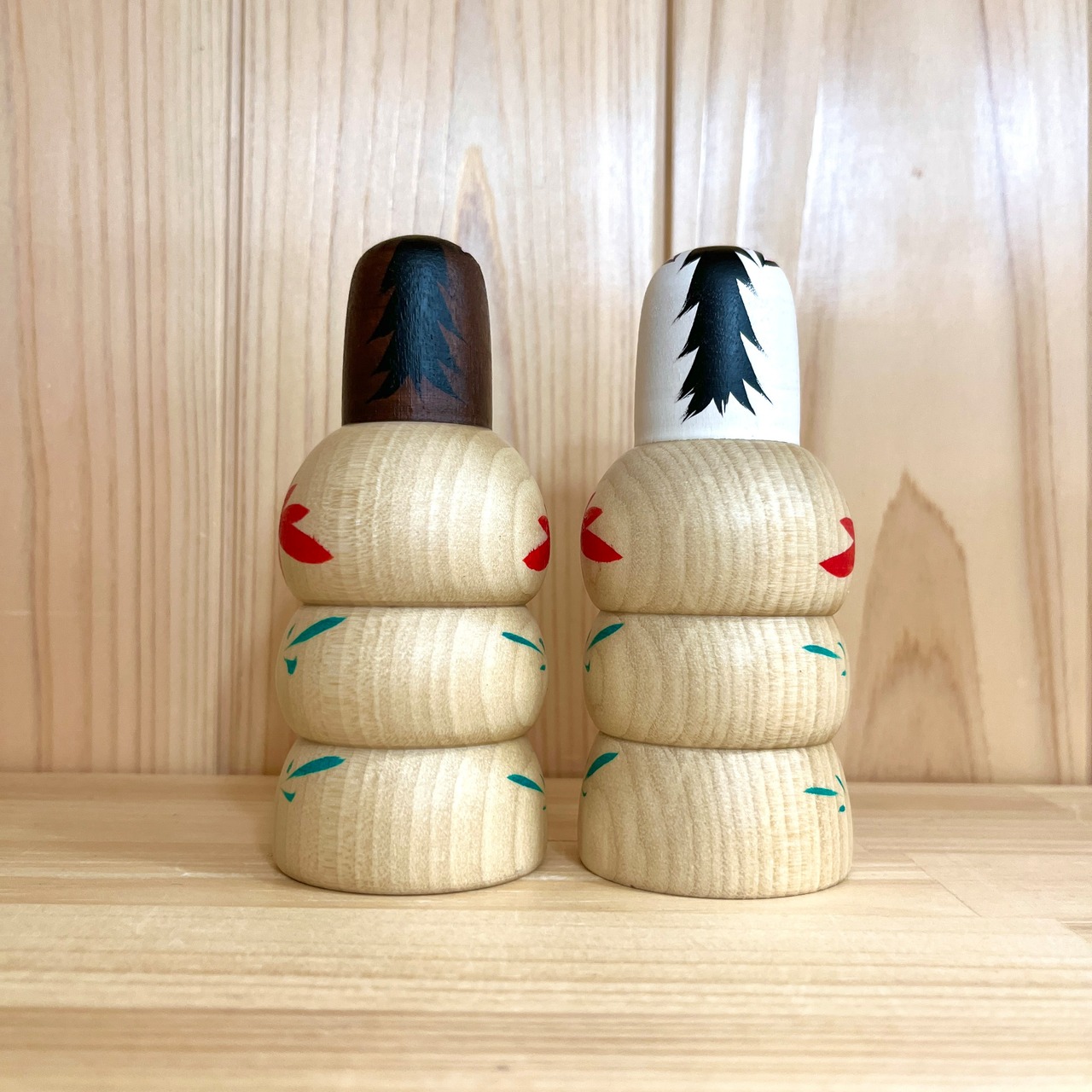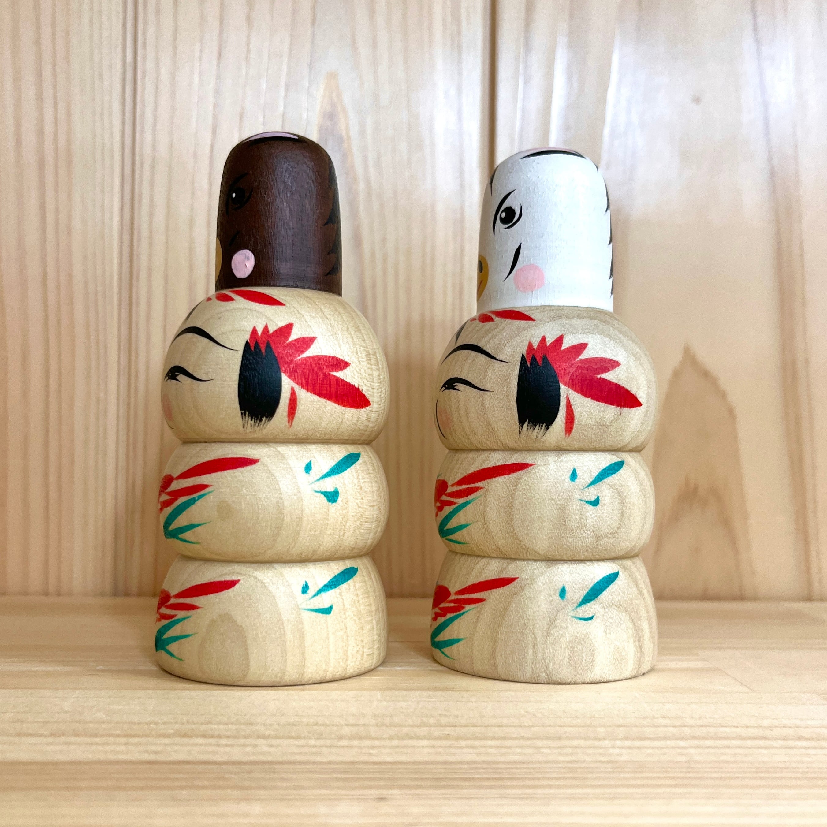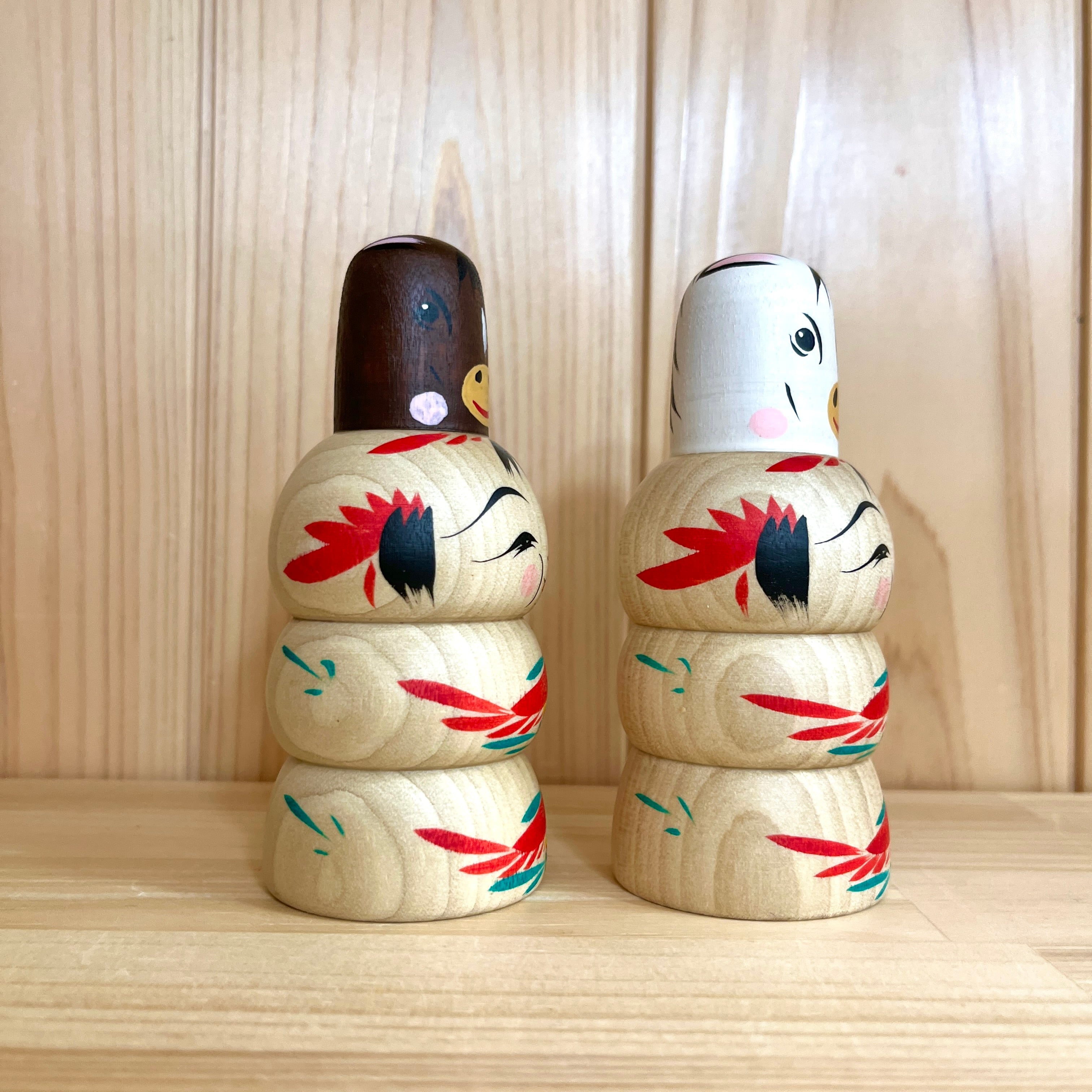 Since all kokeshi dolls are handmade by craftsmen, the grain and coloring of each kokeshi doll differs from one another.