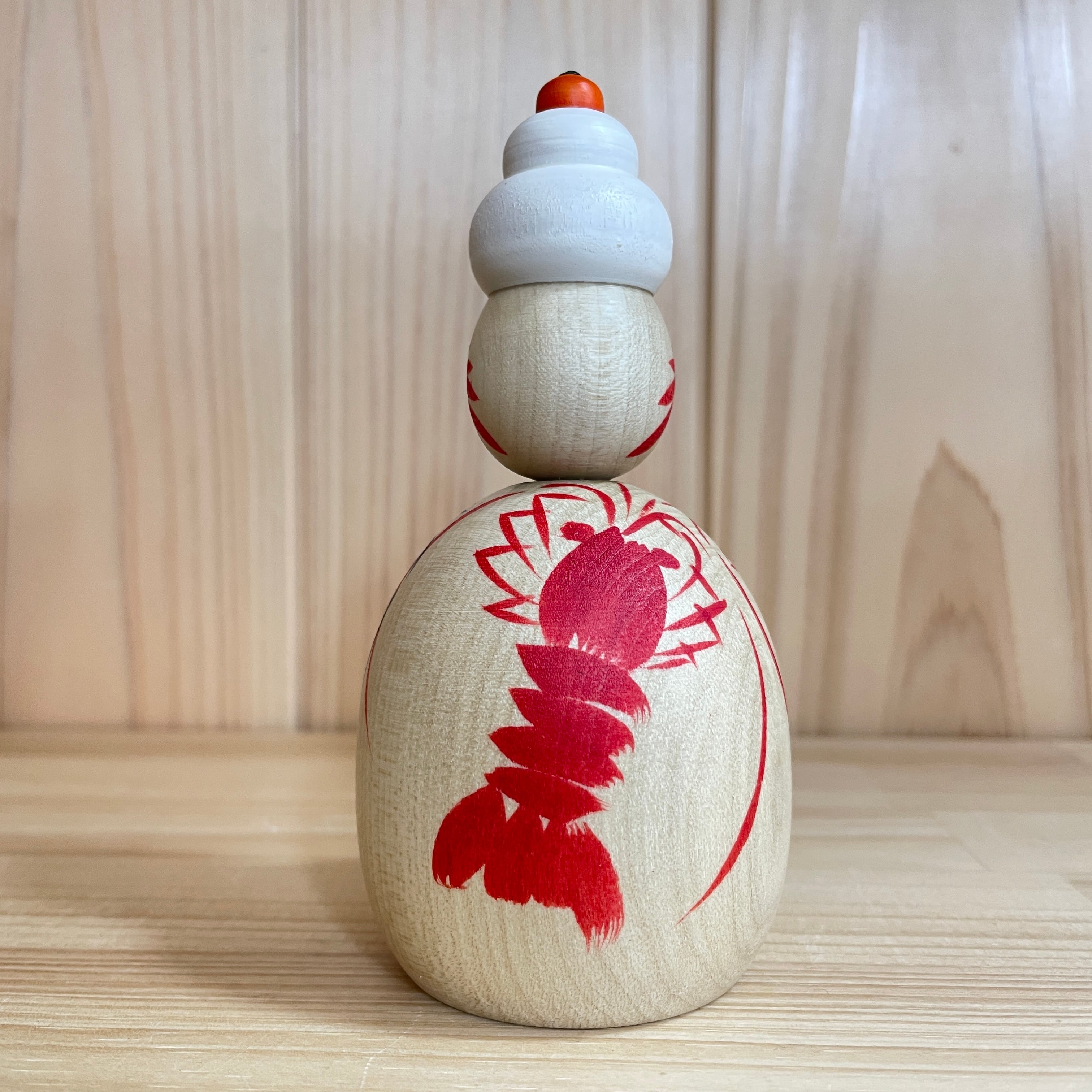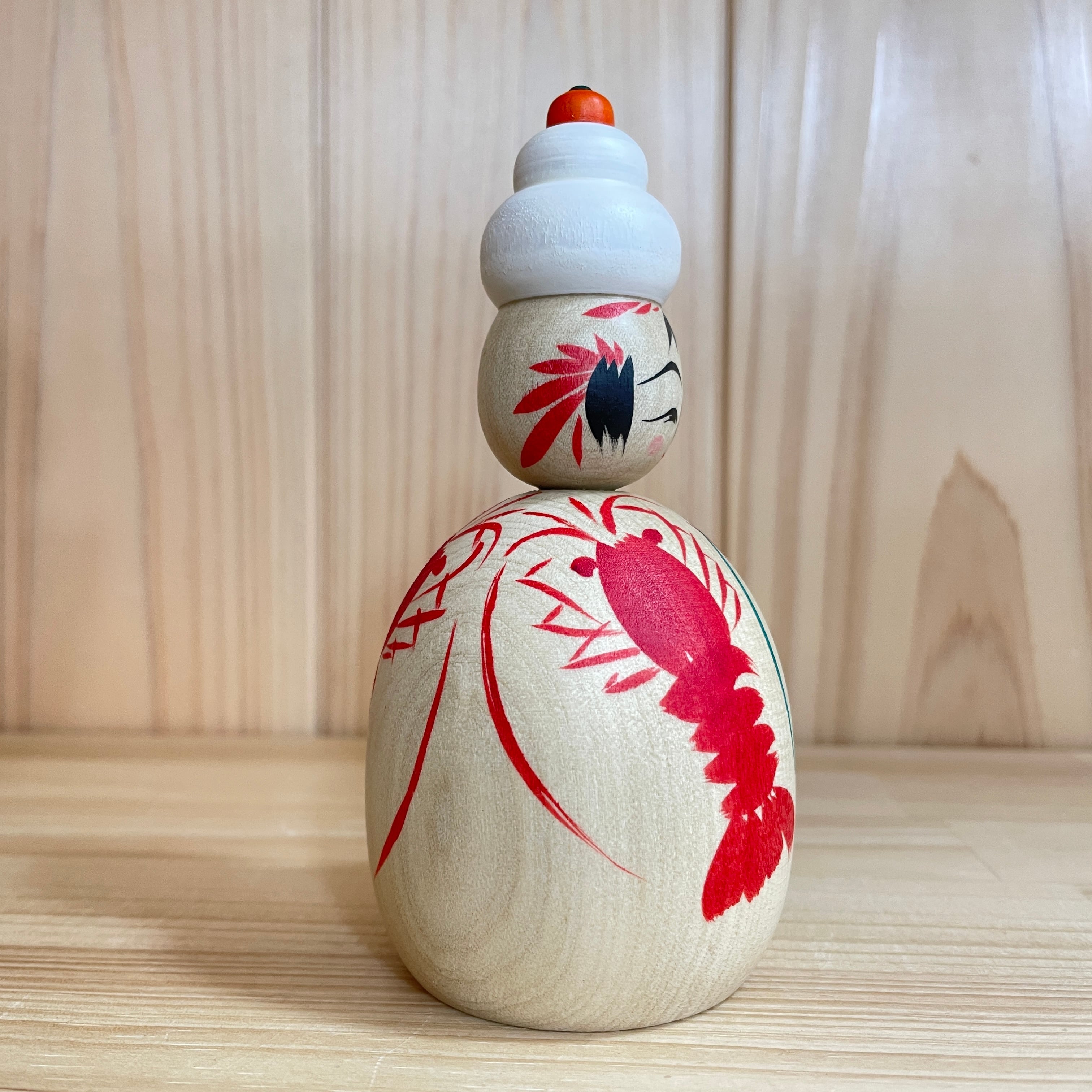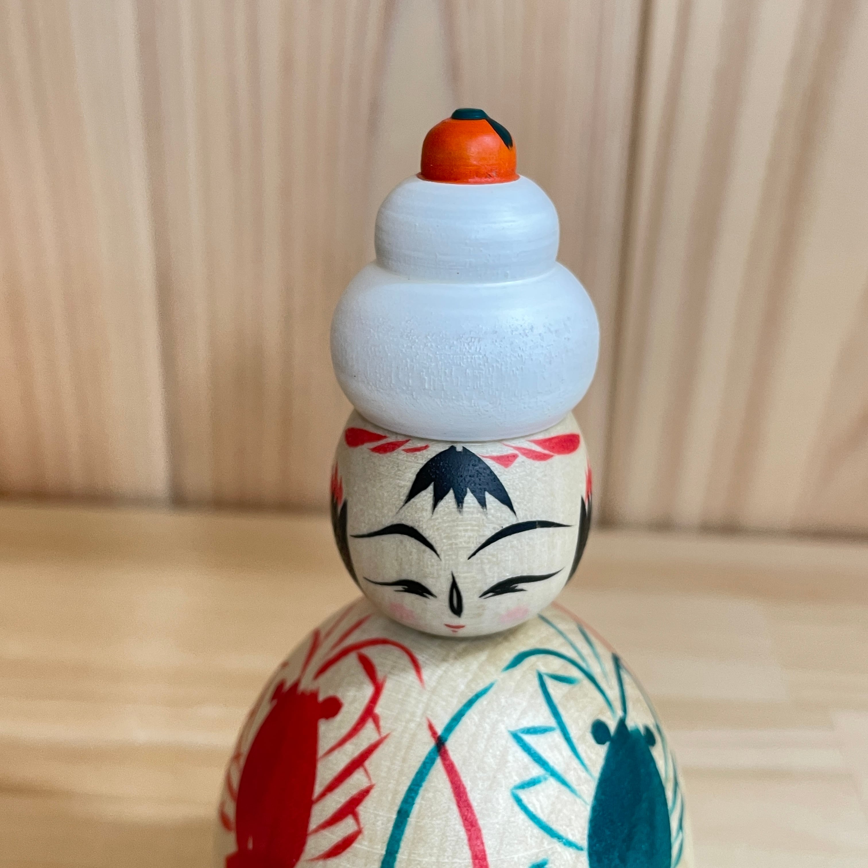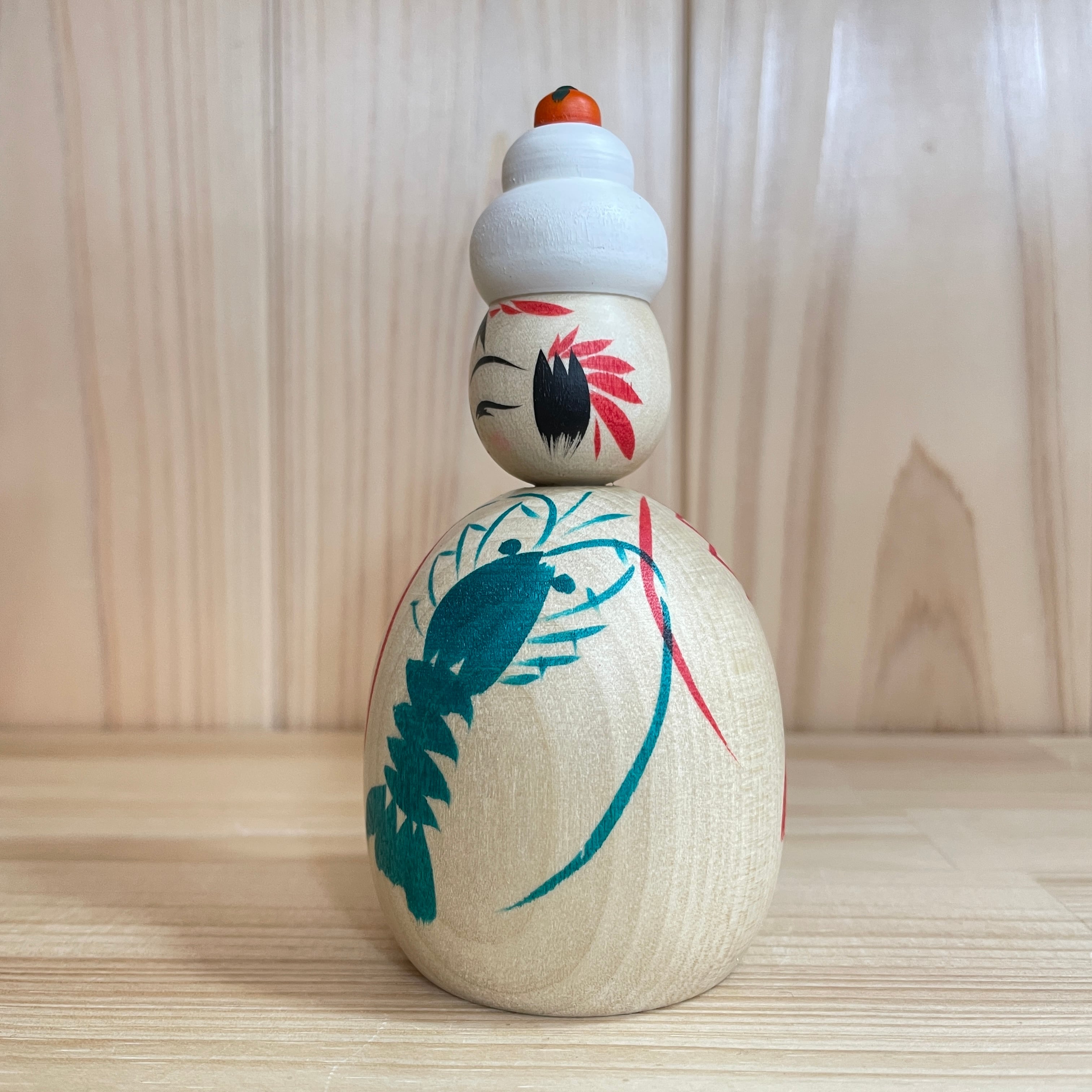 【平賀輝幸工人:作並系】お正月 鏡餅こけし えじこ :約13㎝ N6TeH-241