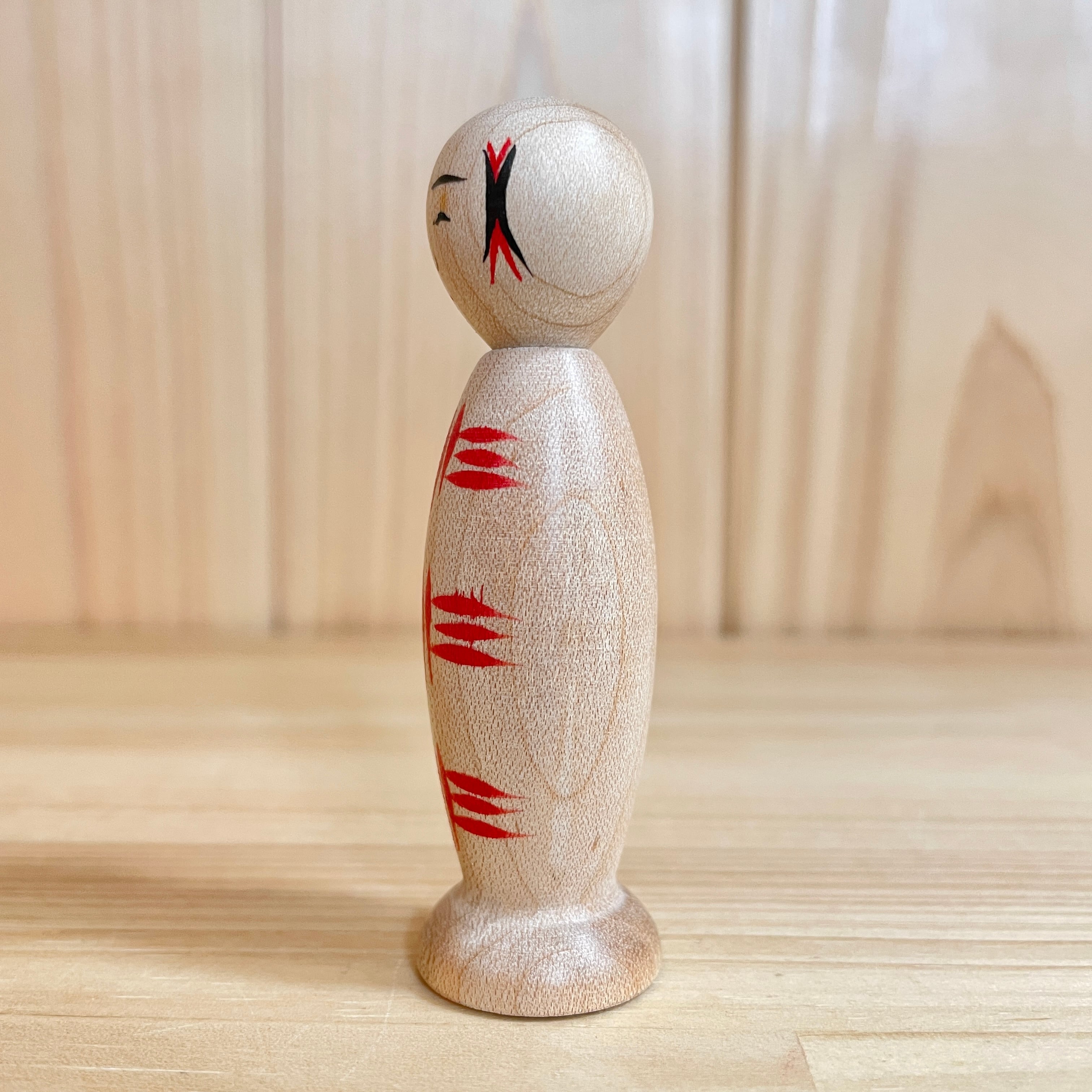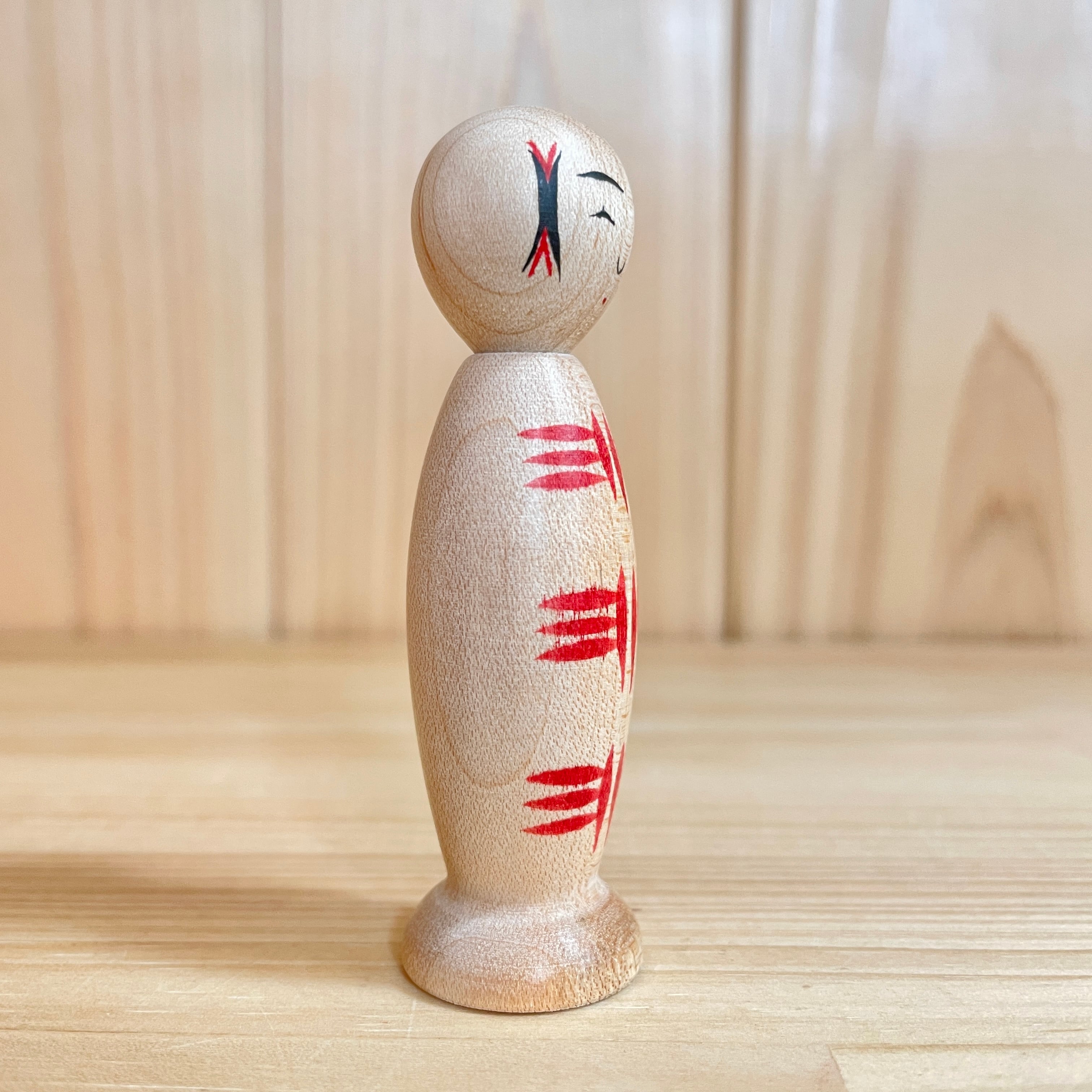 Since all kokeshi dolls are handmade by craftsmen, the grain and coloring of each kokeshi doll differs from one another.