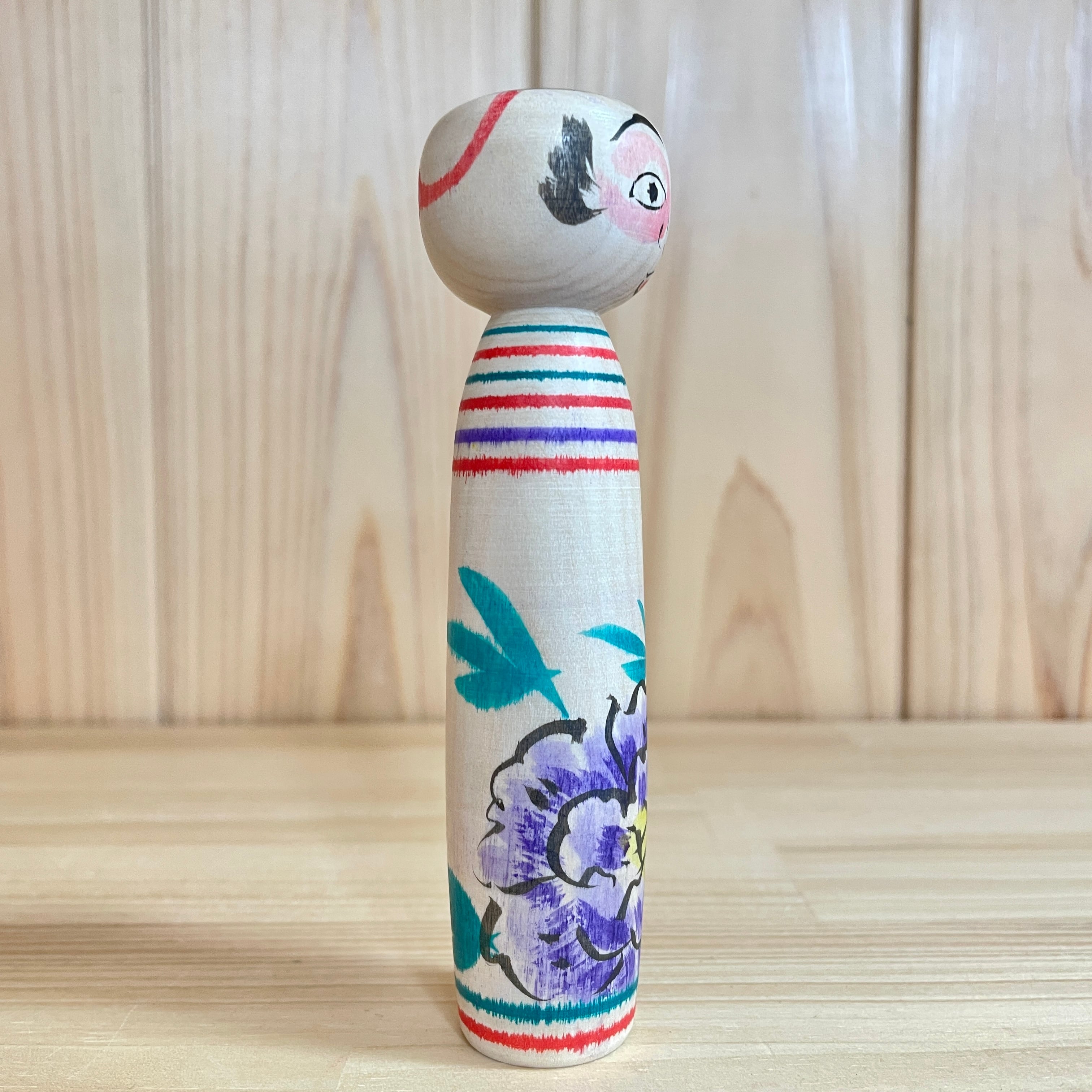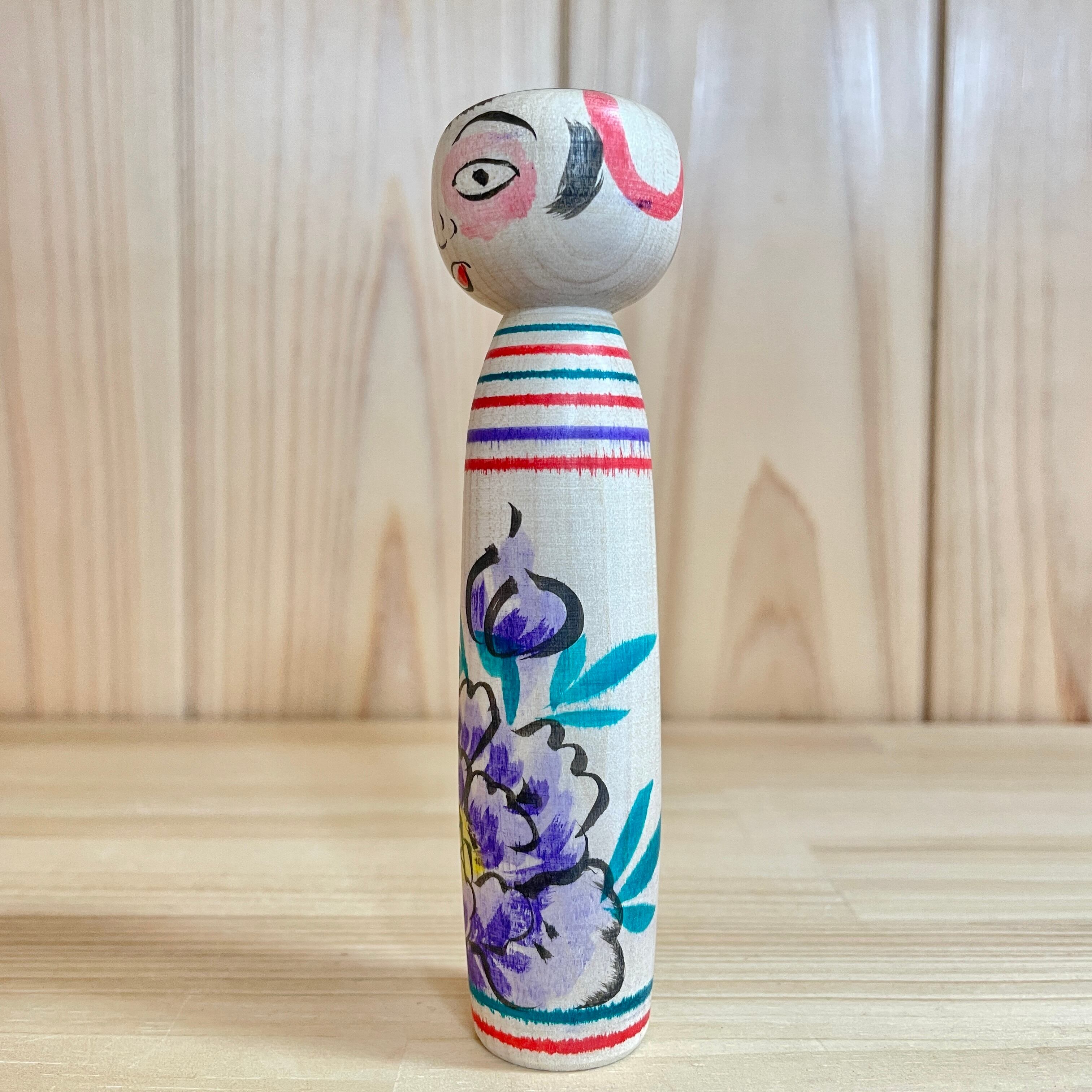 【柿崎文雄工人:中ノ沢系】4寸 こけし 牡丹 紫:約12㎝ N12FK-187