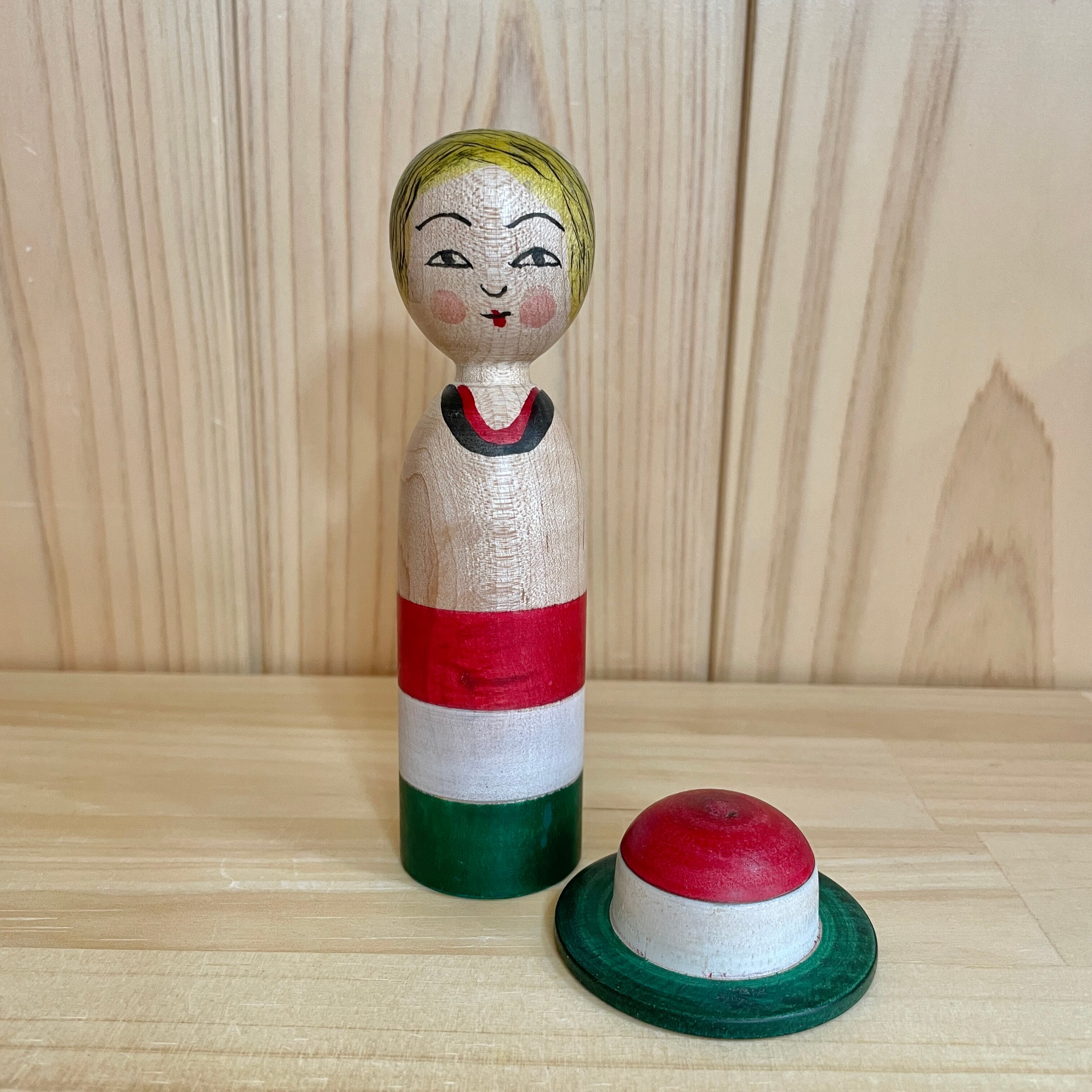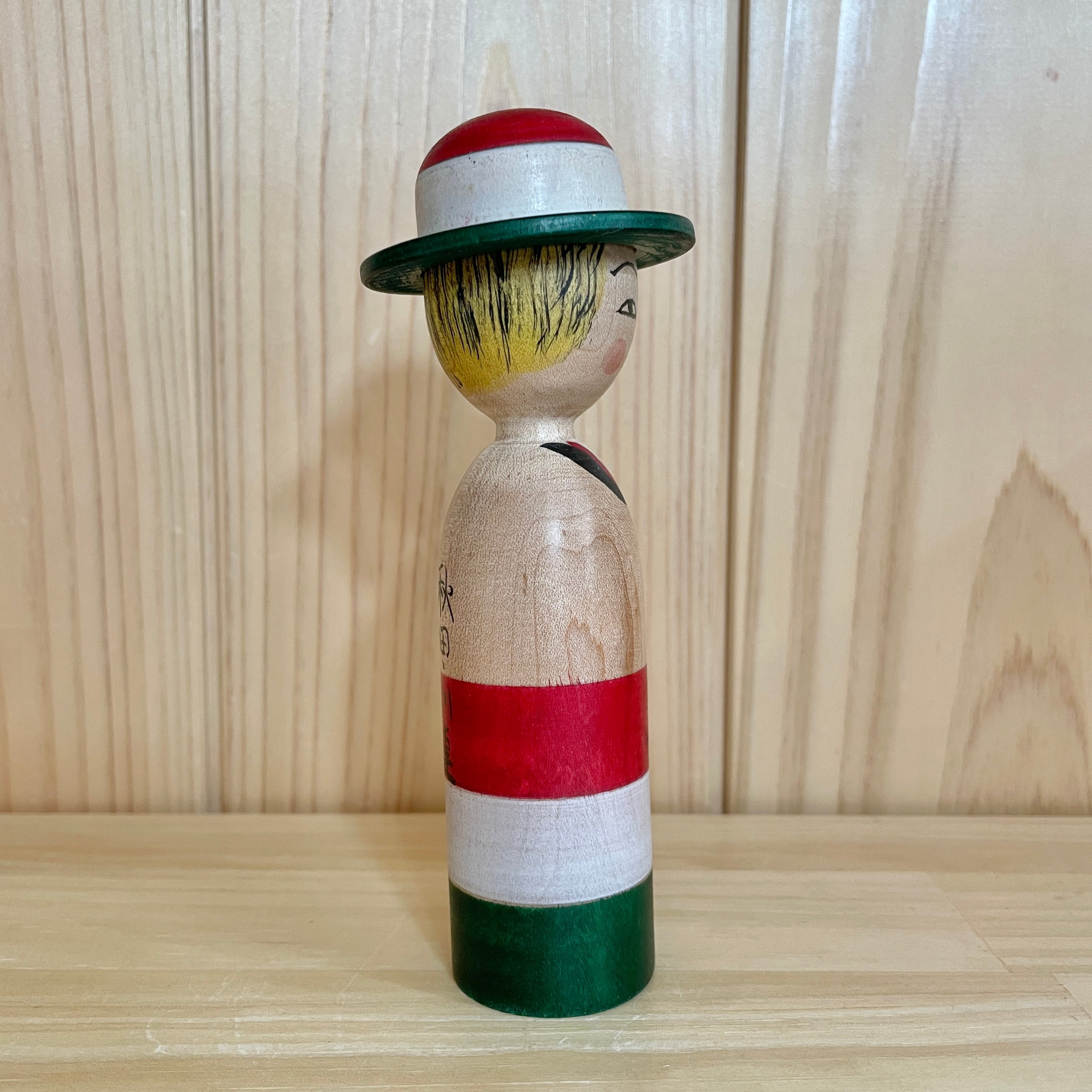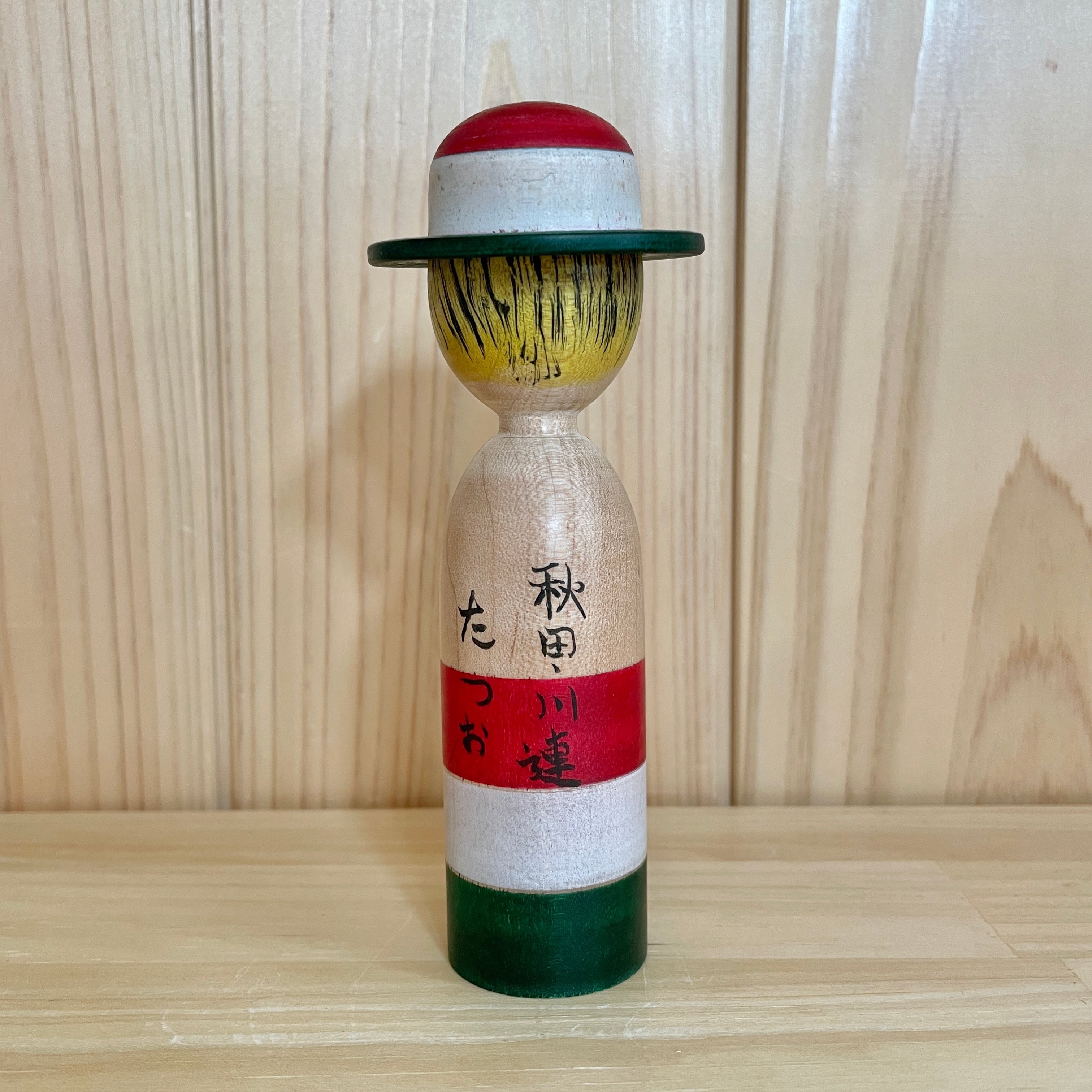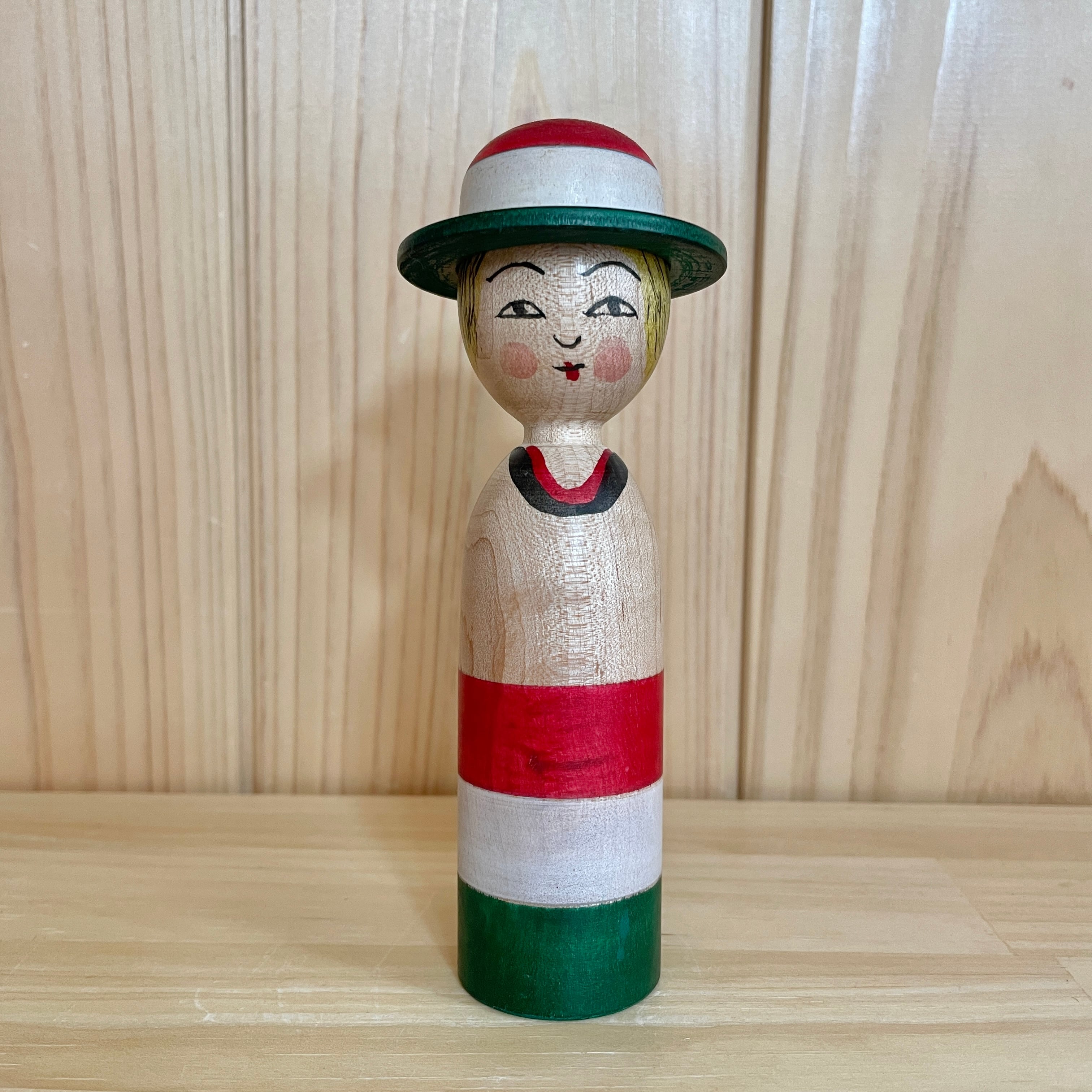 【佐藤達雄工人:木地山系】4寸 帽子こけし メキシコカラー:13cm N3TS-176