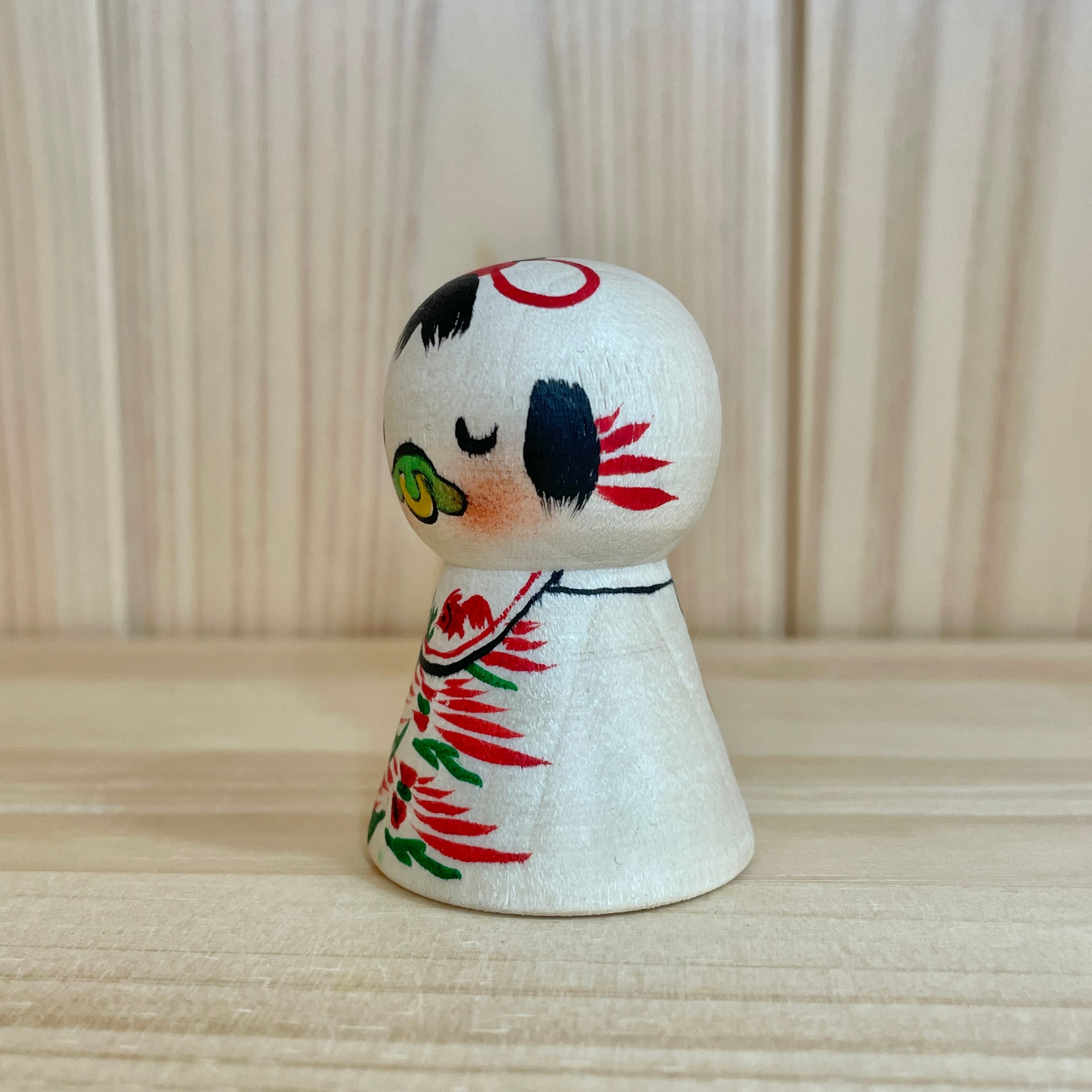 Since all kokeshi dolls are handmade by craftsmen, the grain and coloring of each kokeshi doll differs from one another.