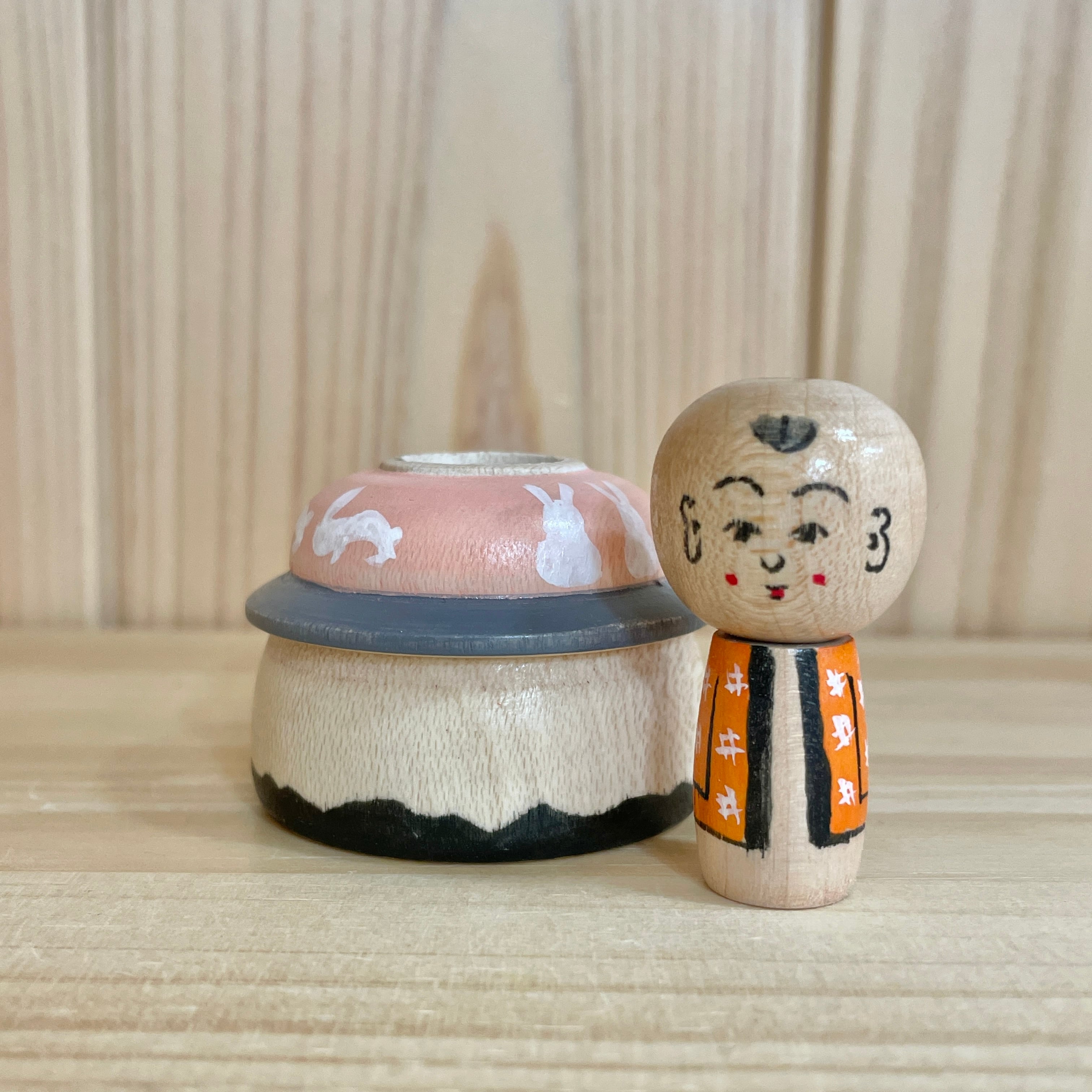 Since all kokeshi dolls are handmade by craftsmen, the grain and coloring of each kokeshi doll differs from one another.