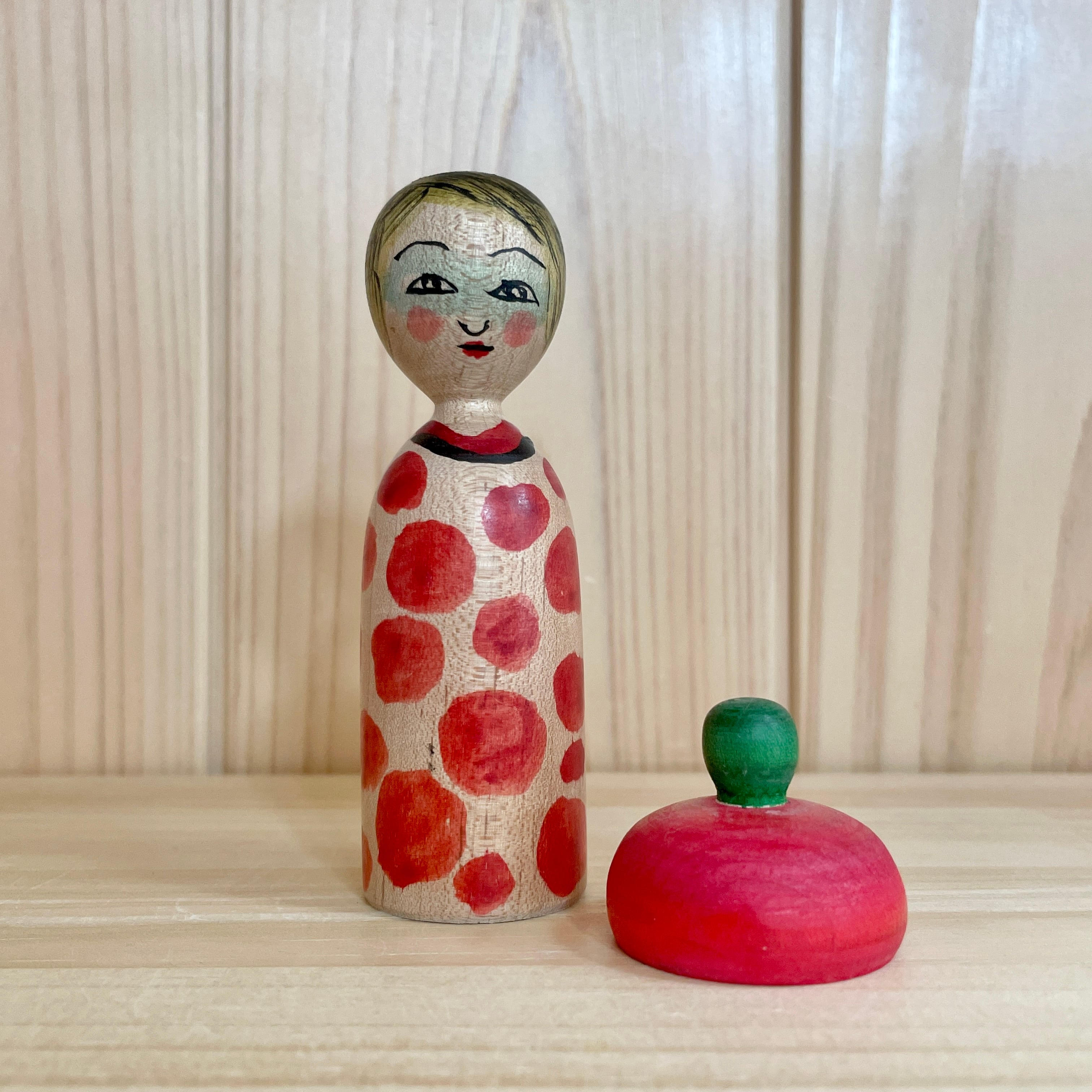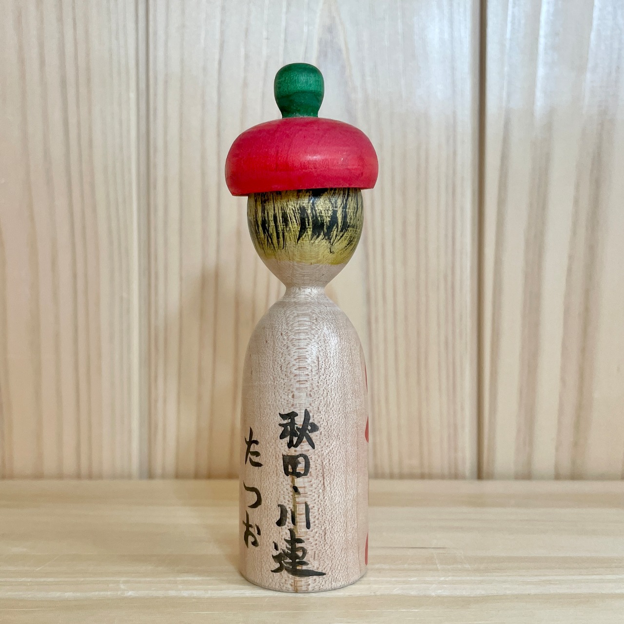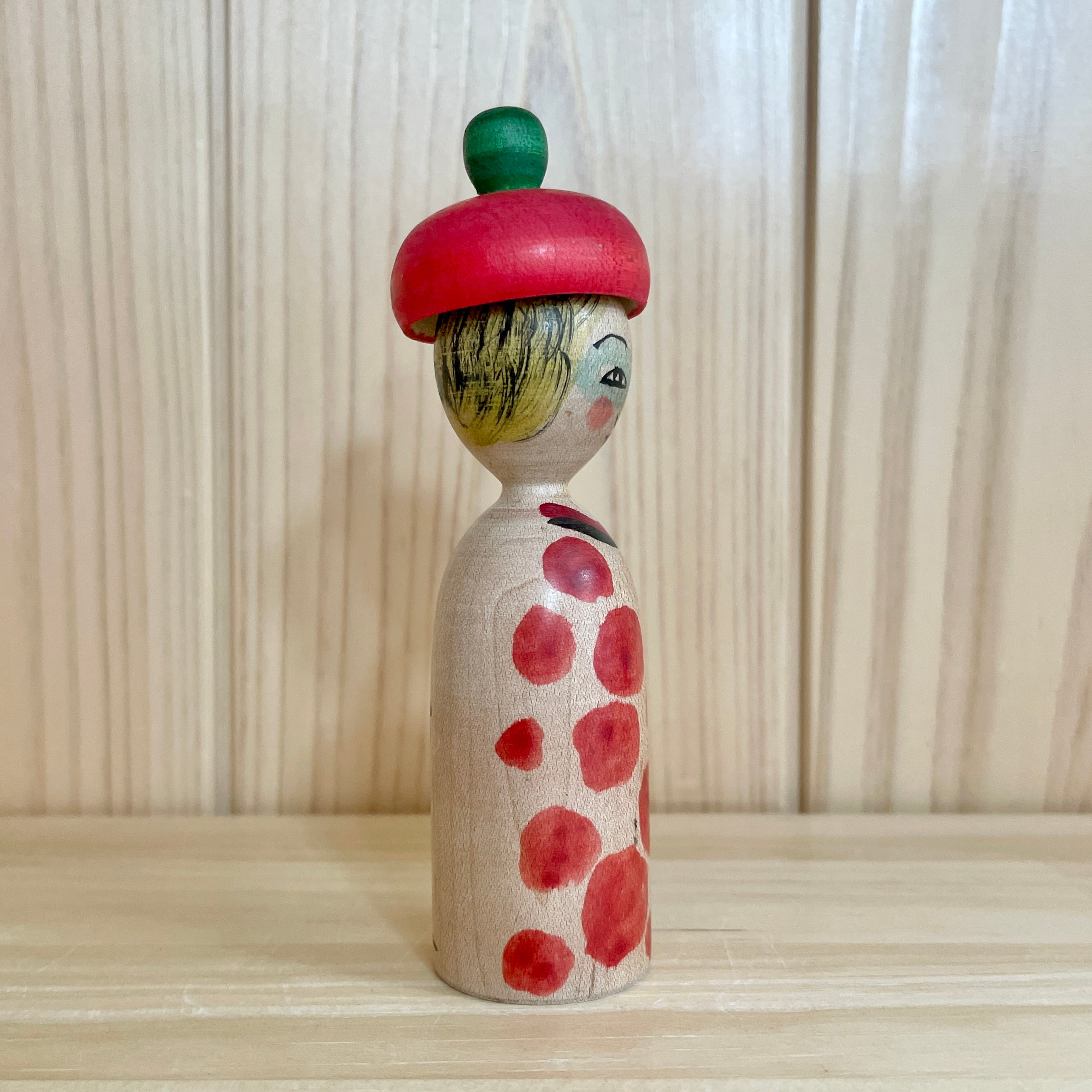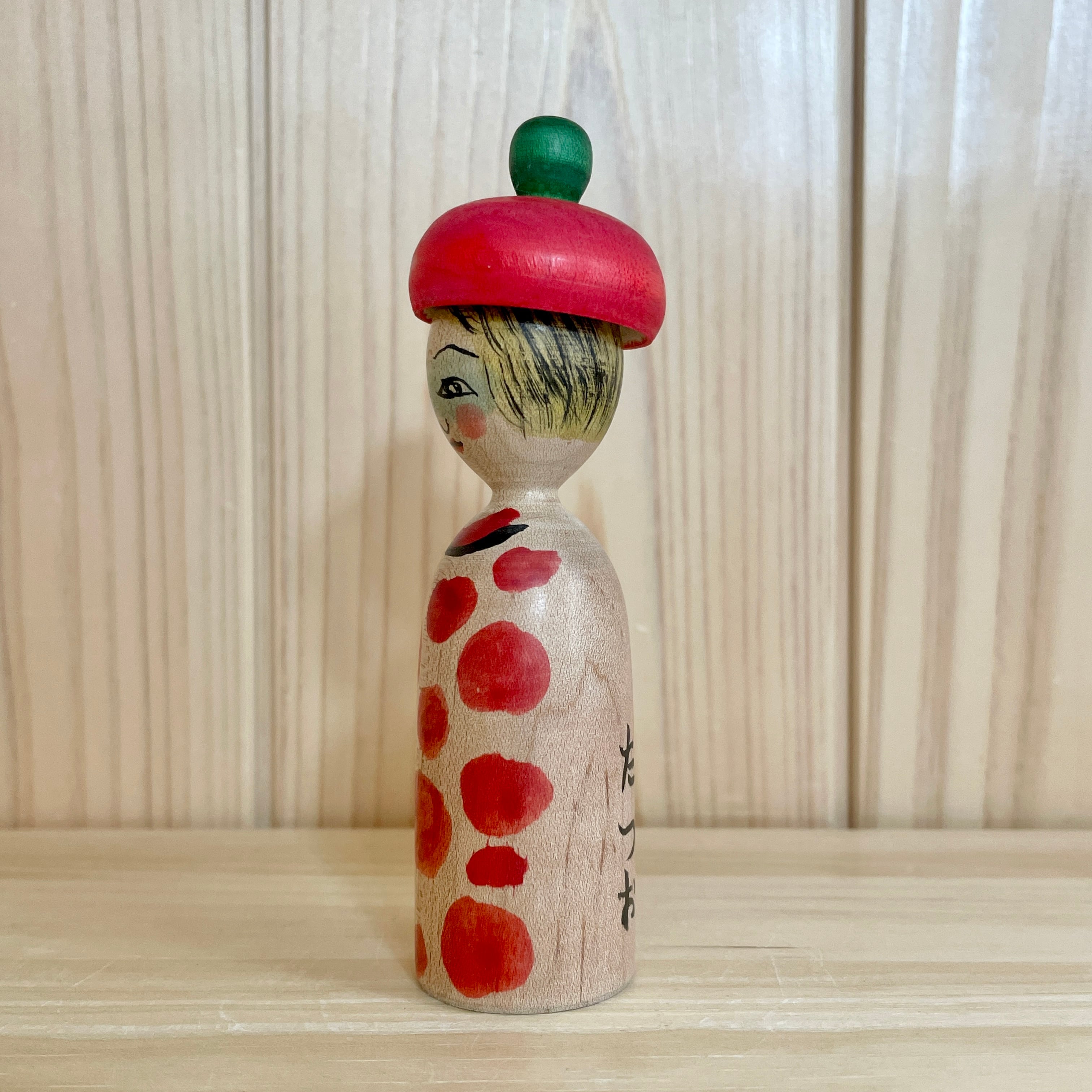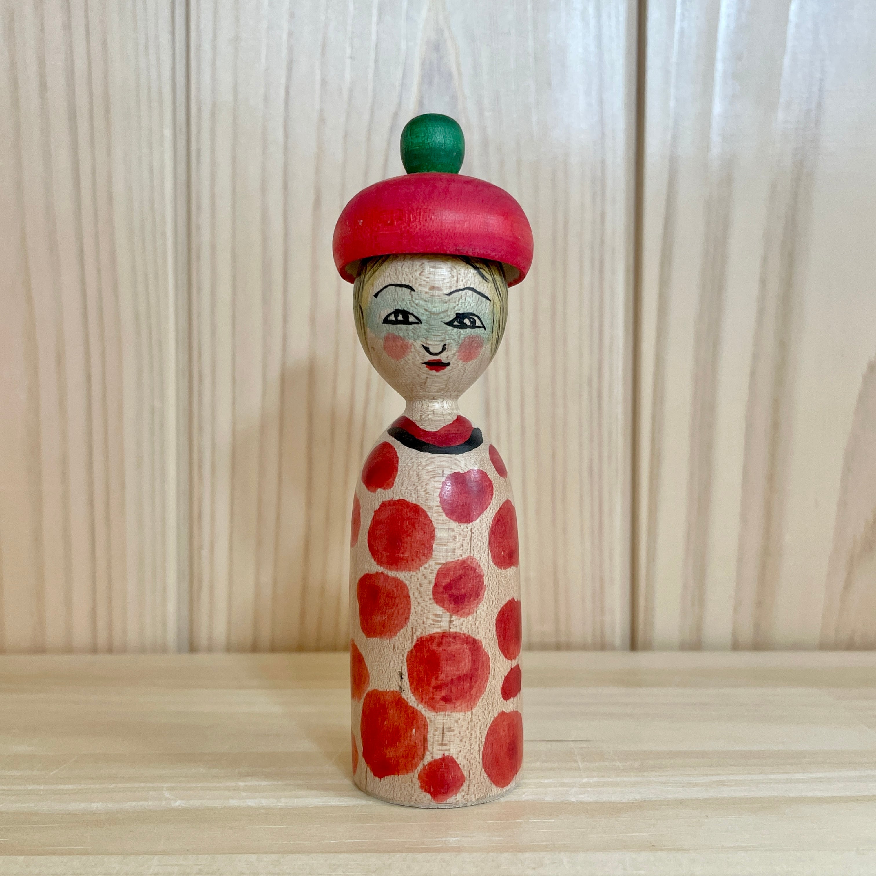【佐藤達雄工人:木地山系】こけし 赤帽子 赤ドット:約11.5cm N3TS-172