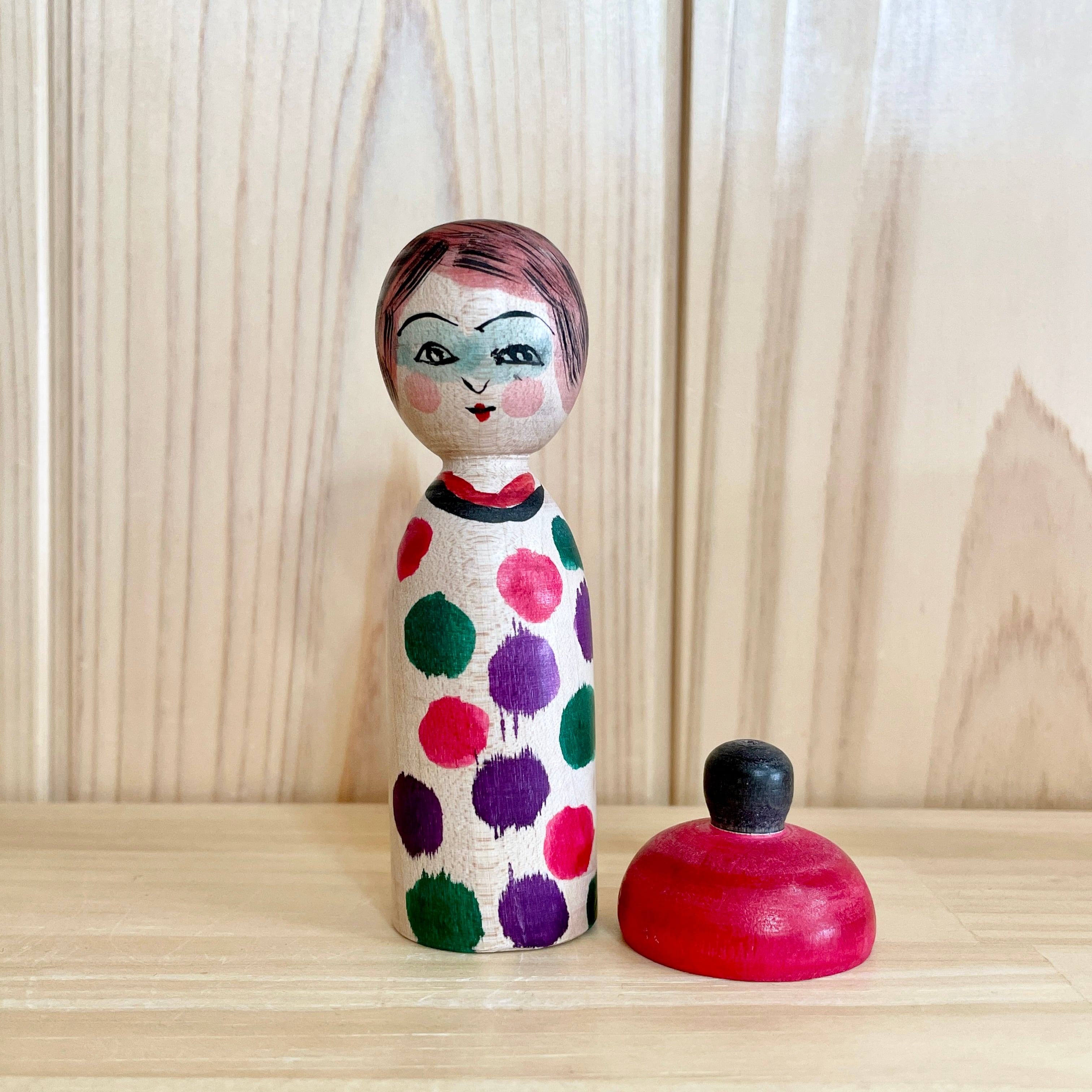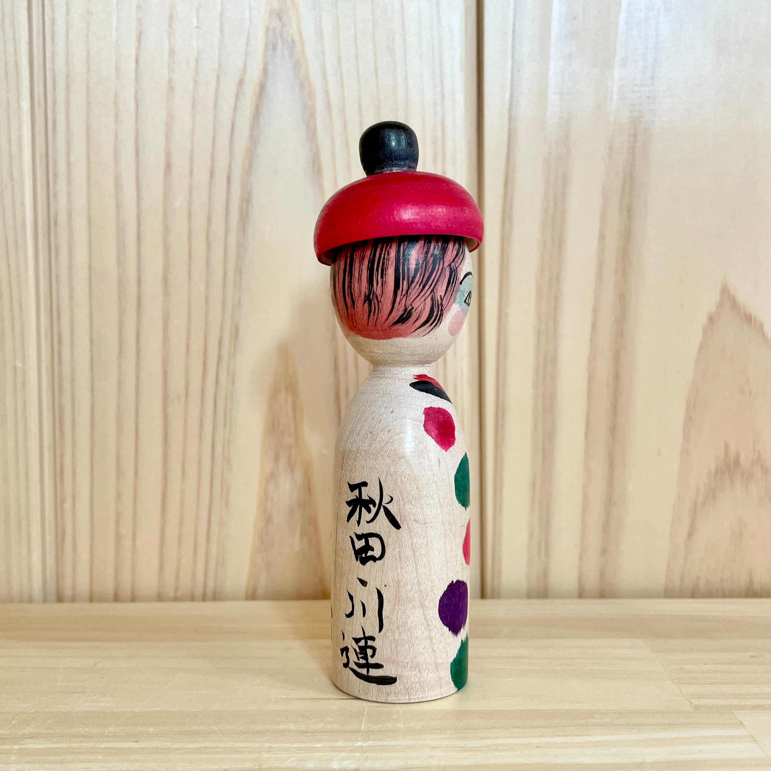 Since all kokeshi dolls are handmade by craftsmen, the grain and coloring of each kokeshi doll differs from one another.