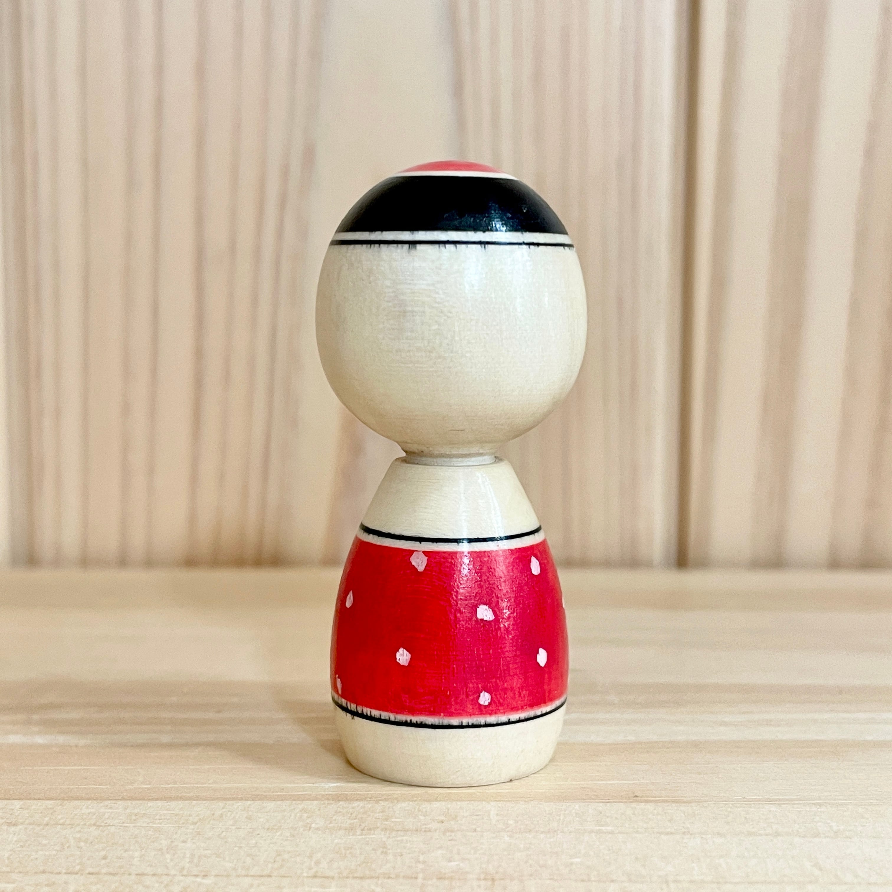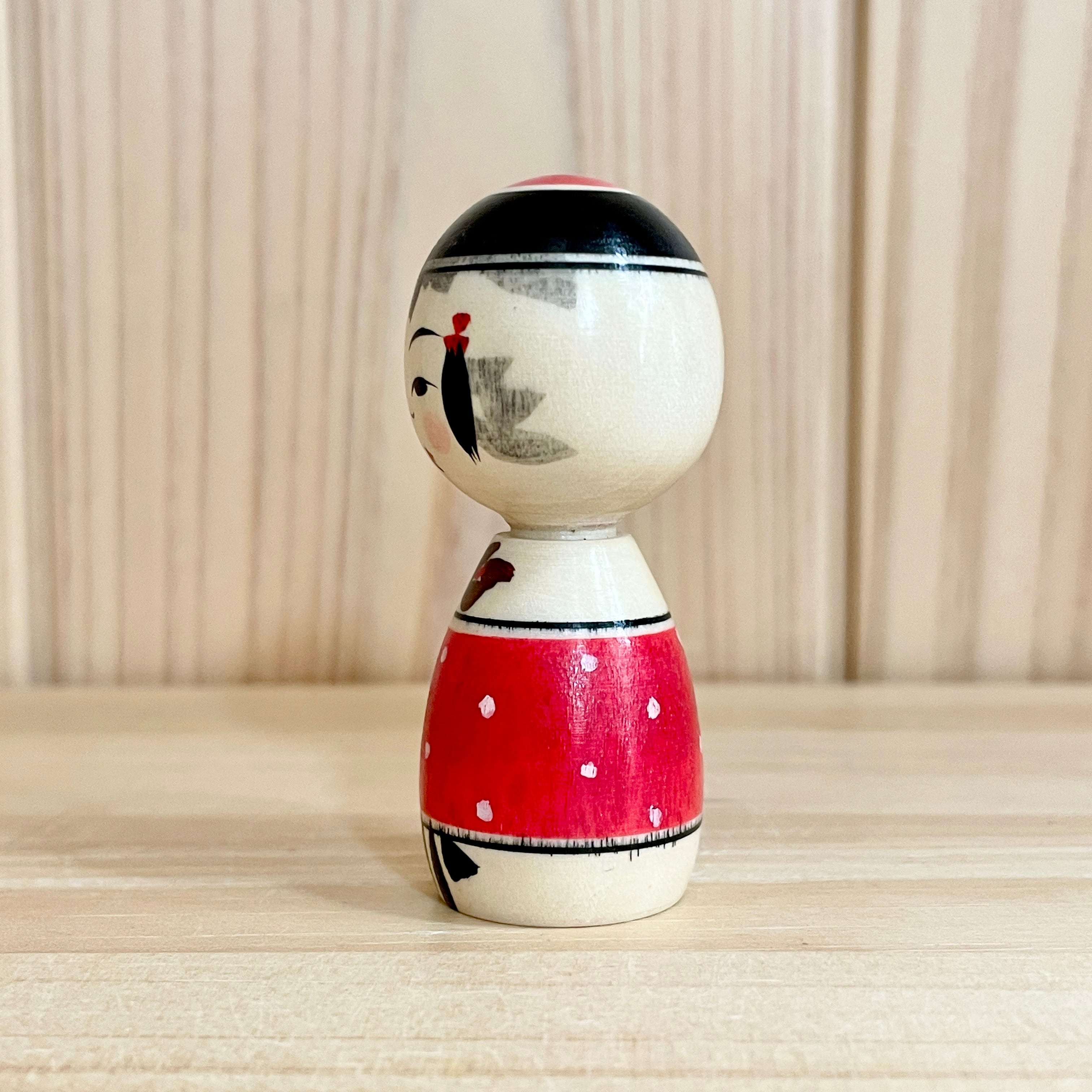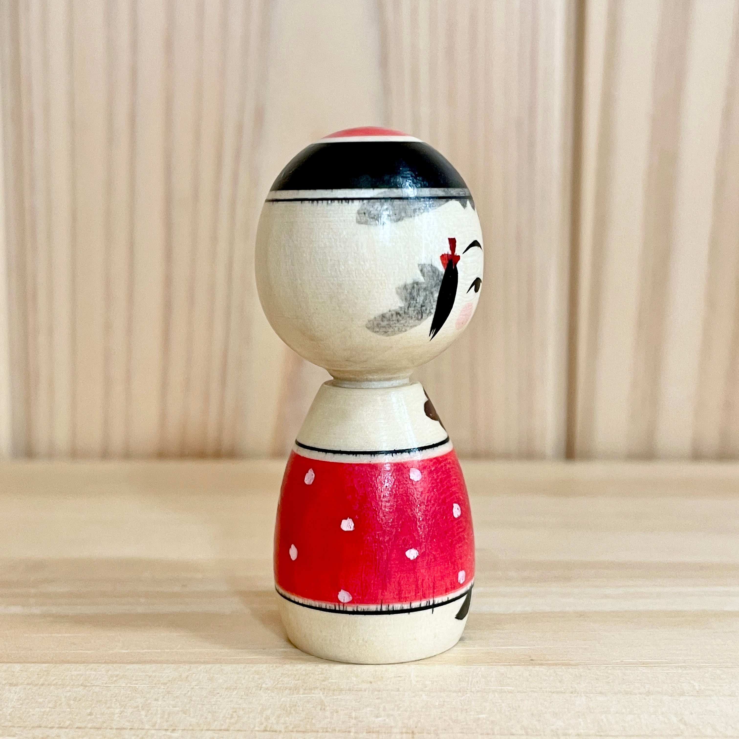 【池内潮音工人:弥治郎系】2寸 こけし バレンタイン 赤ドット:6cm N10SI-752