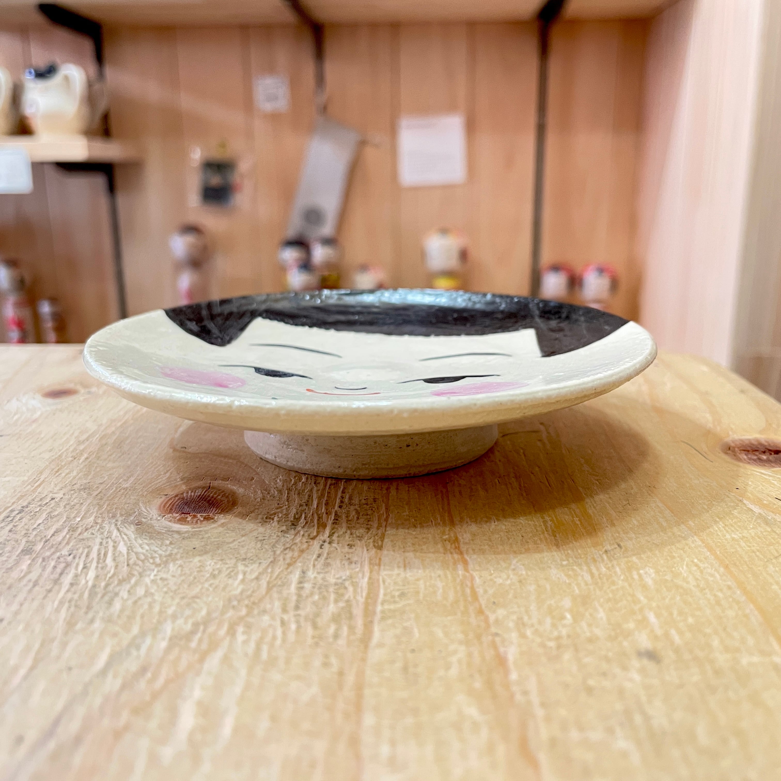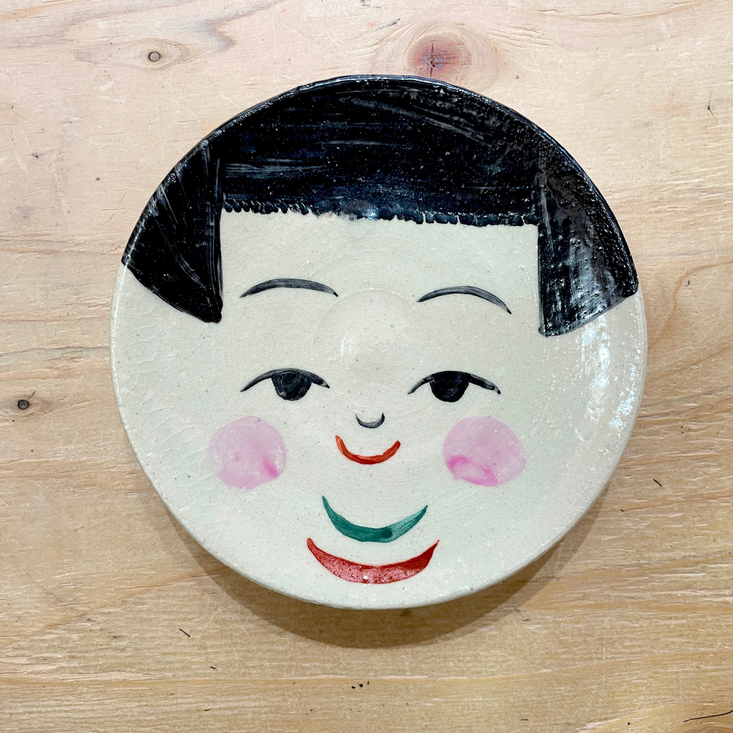 【鈴木ハツミ:陶芸】 円皿 こけしデザイン 陶器:直径 11.5㎝ OTHER-1138
