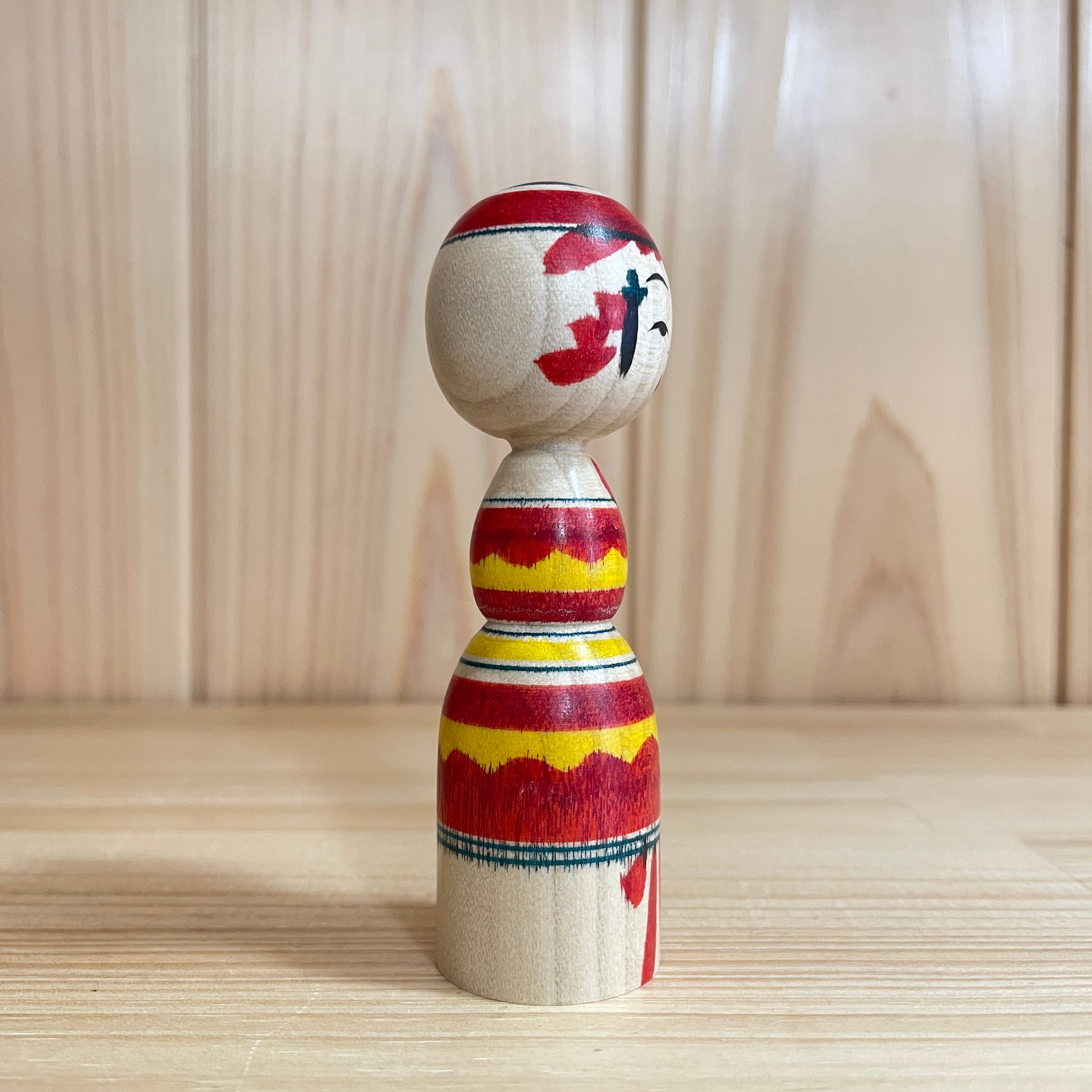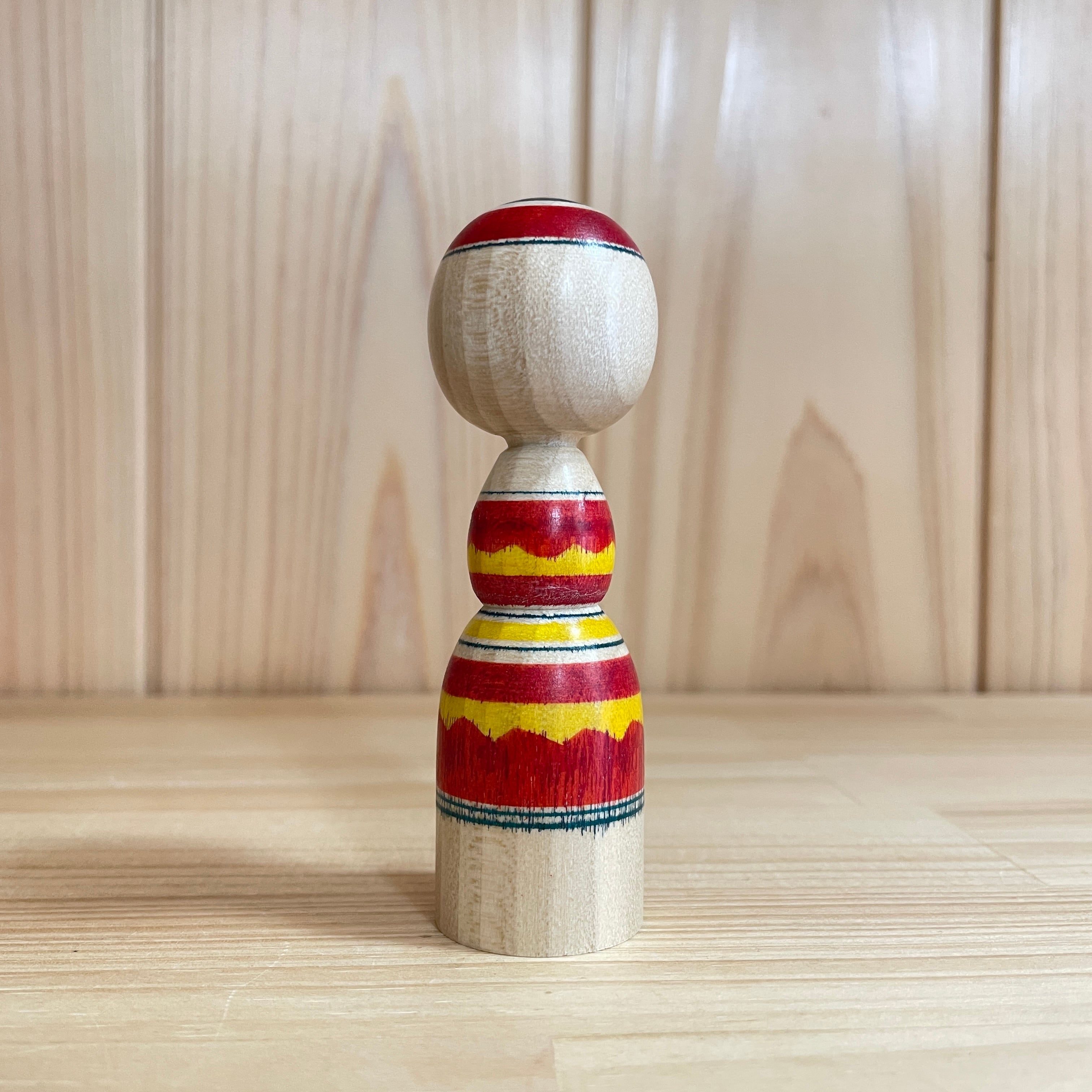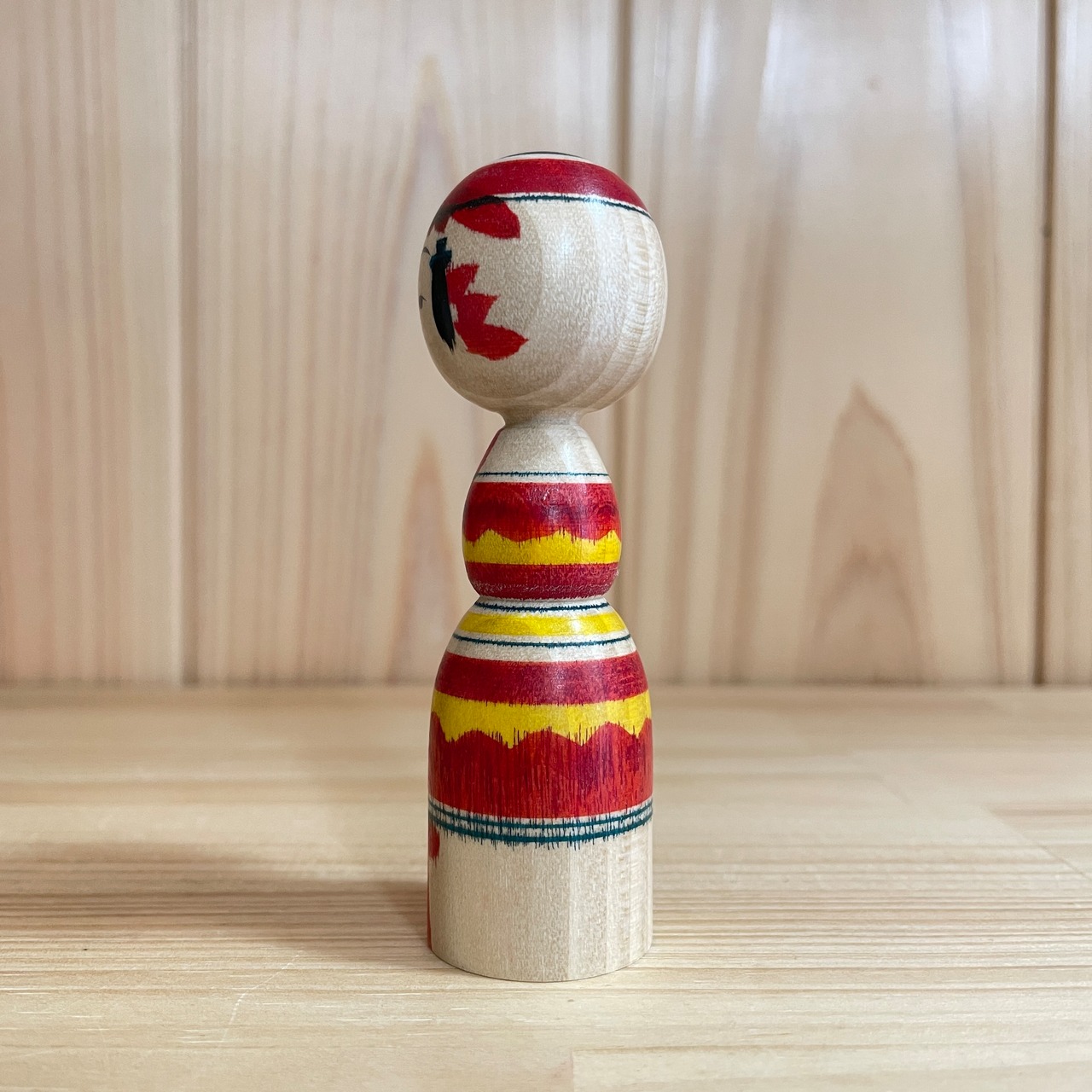 【池内潮音工人:弥治郎系】3寸 こけし 赤黄 :約9cm N10SI-522