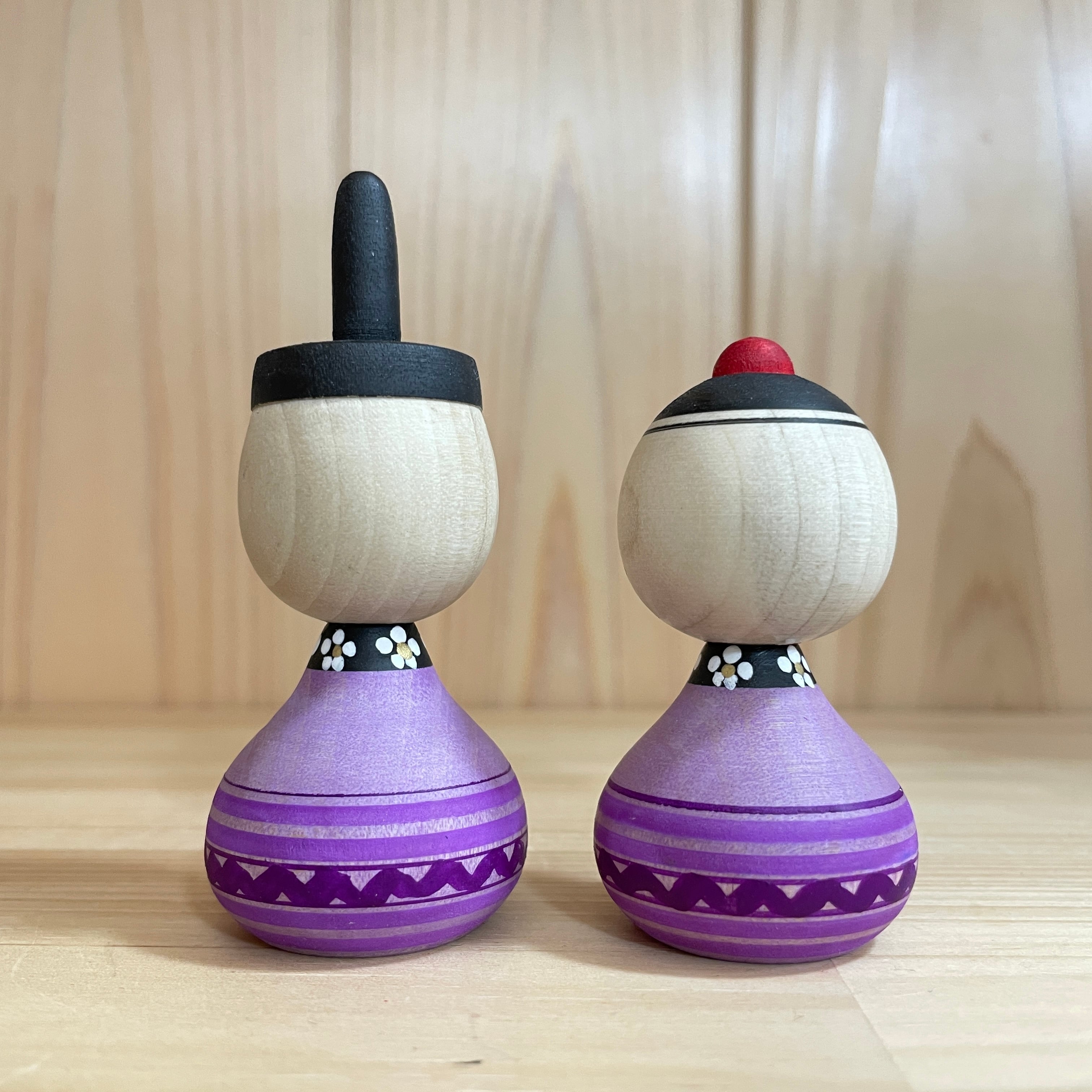 Since all kokeshi dolls are handmade by craftsmen, the grain and coloring of each kokeshi doll differs from one another.