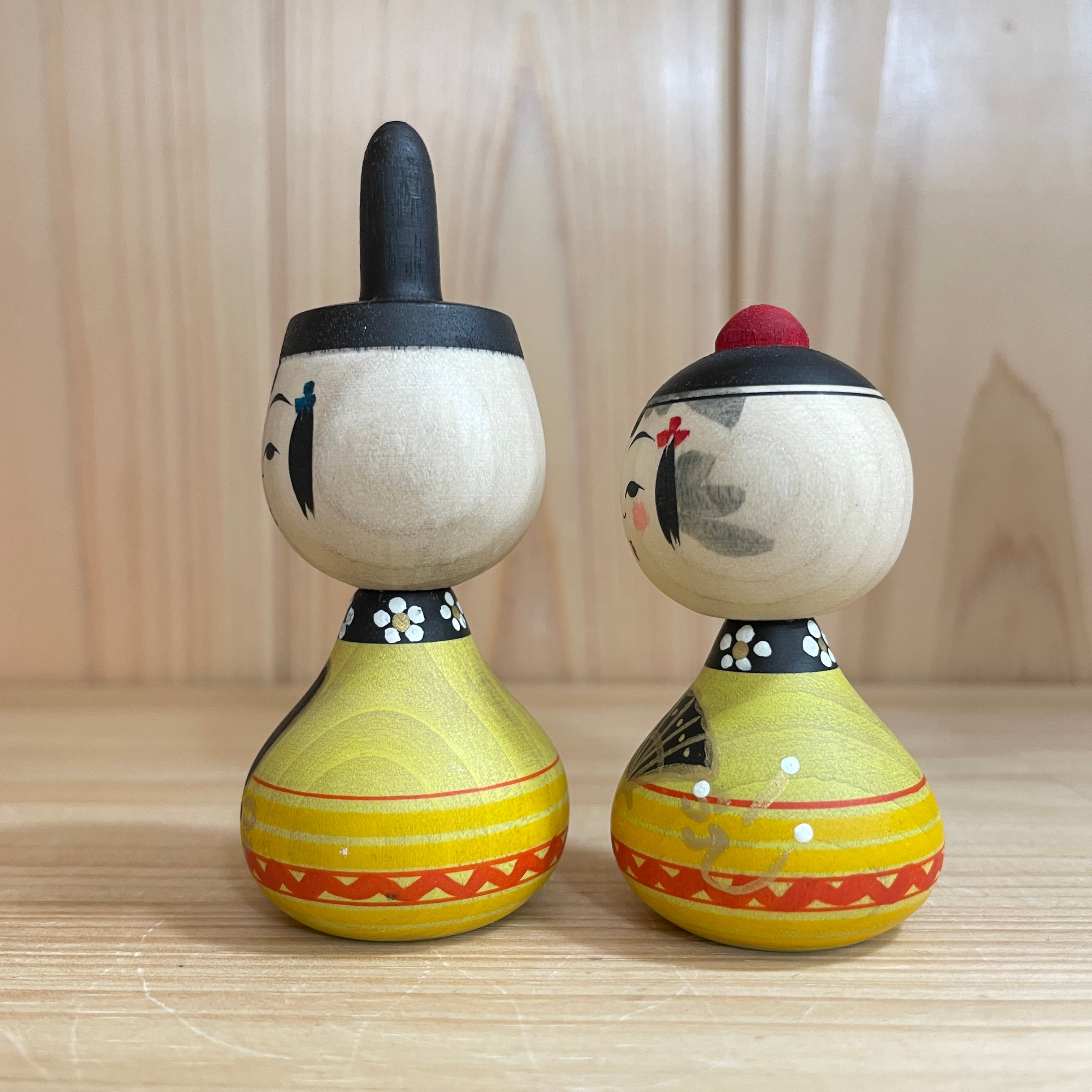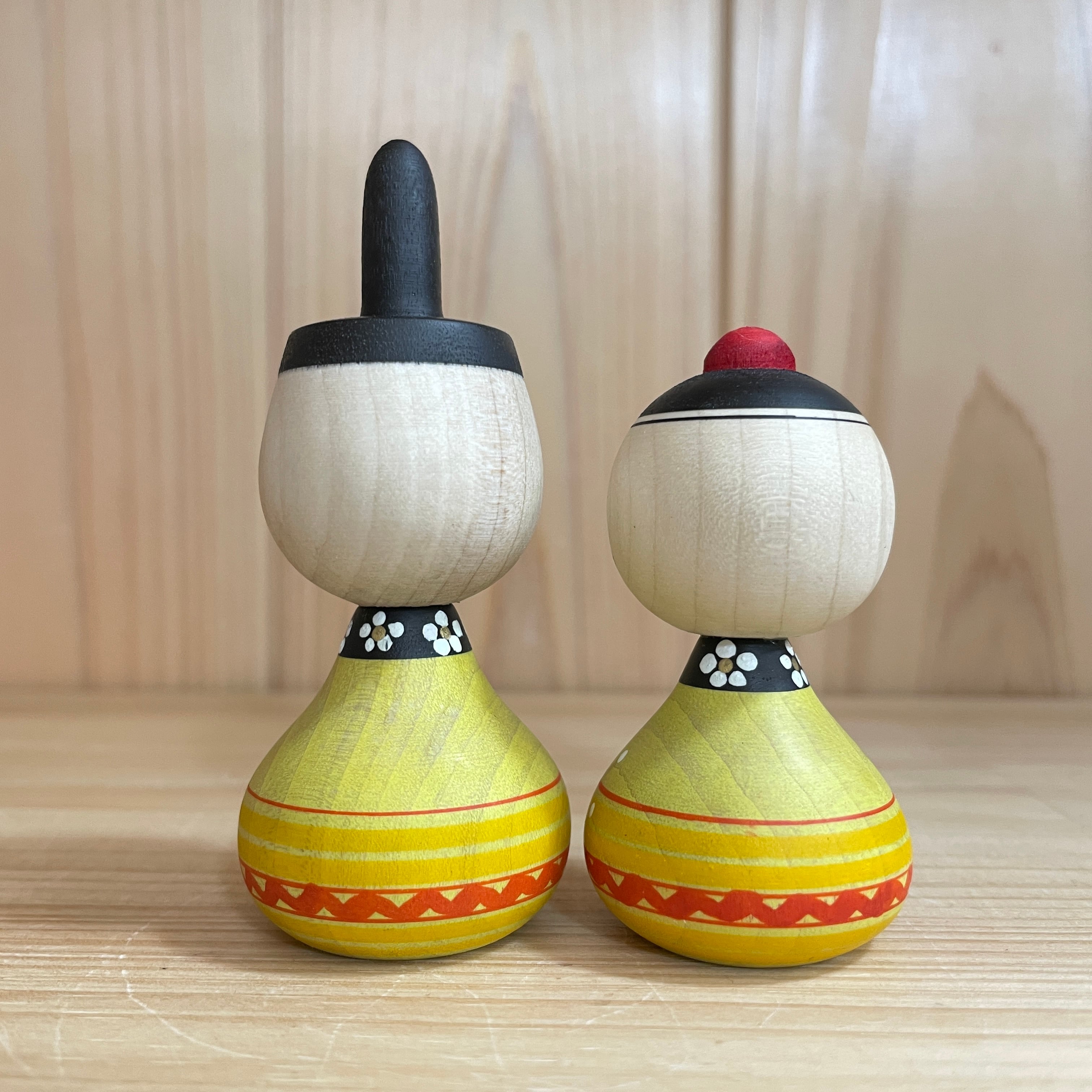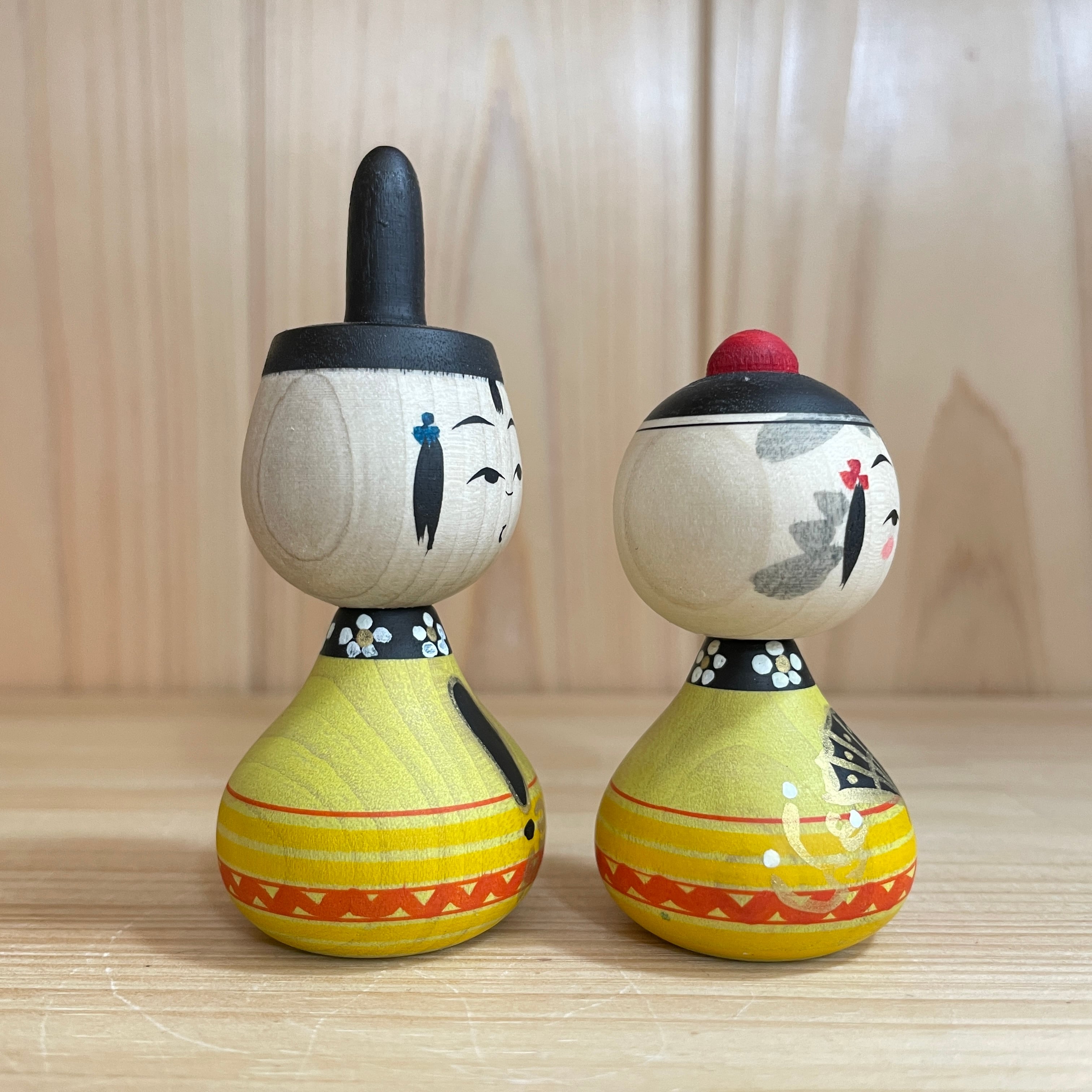【池内潮音工人:弥次郎系】ミニ雛こけし 黄:3寸 9㎝/7cm N10SI-774