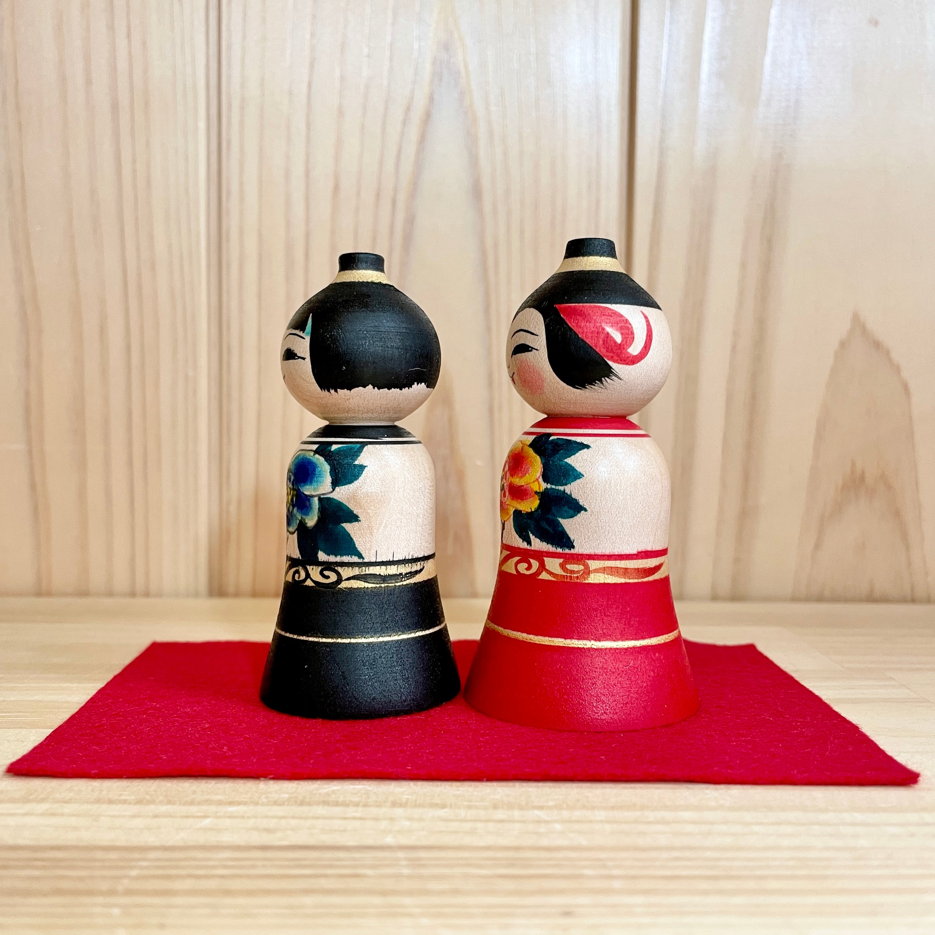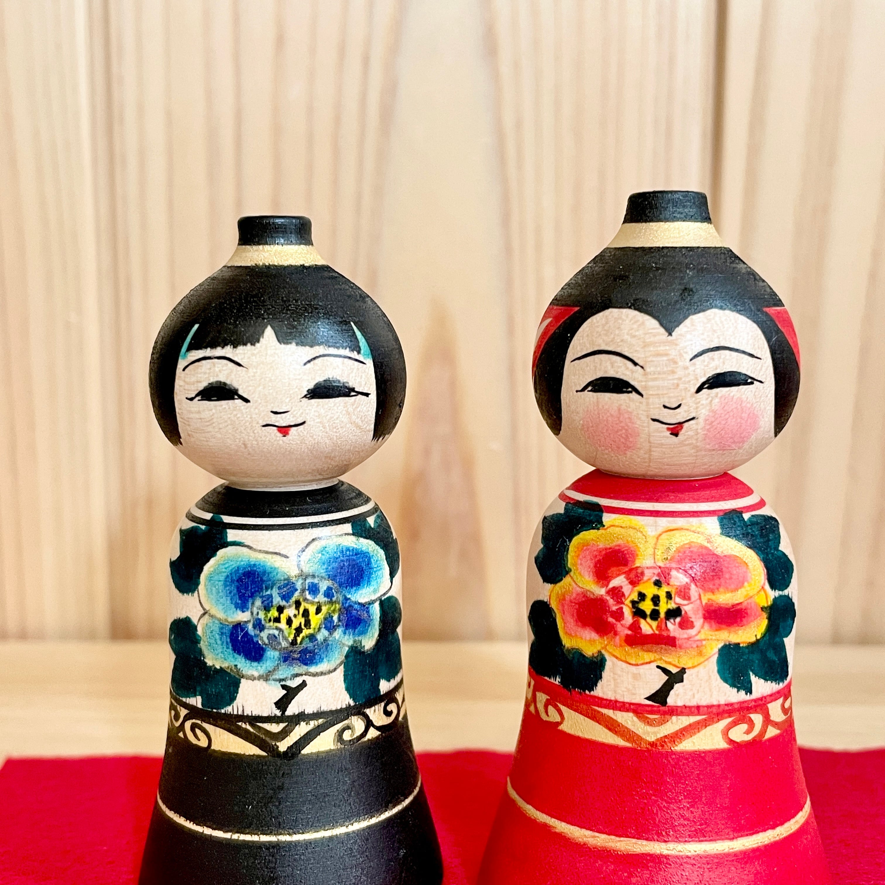 Since all kokeshi dolls are handmade by craftsmen, the grain and coloring of each kokeshi doll differs from one another.