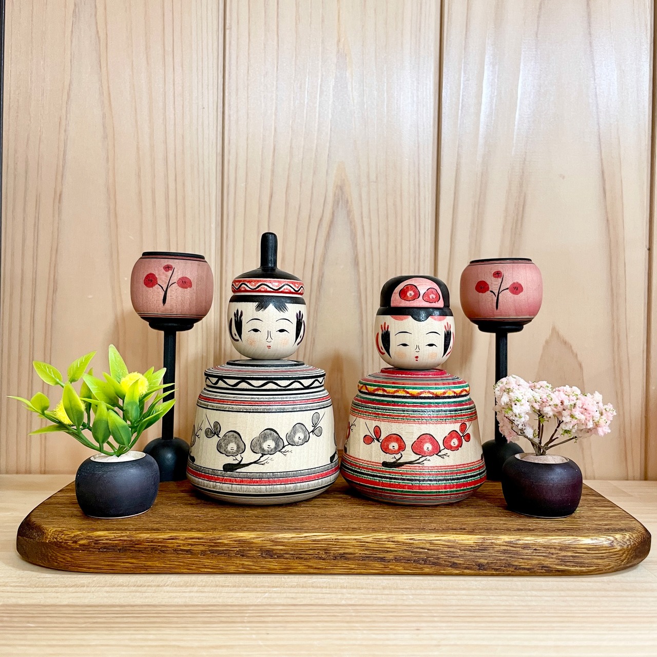 【佐藤裕介工人:弥次郎系】雛こけしセット 墨紅:約11cm・9cm N10YS-223