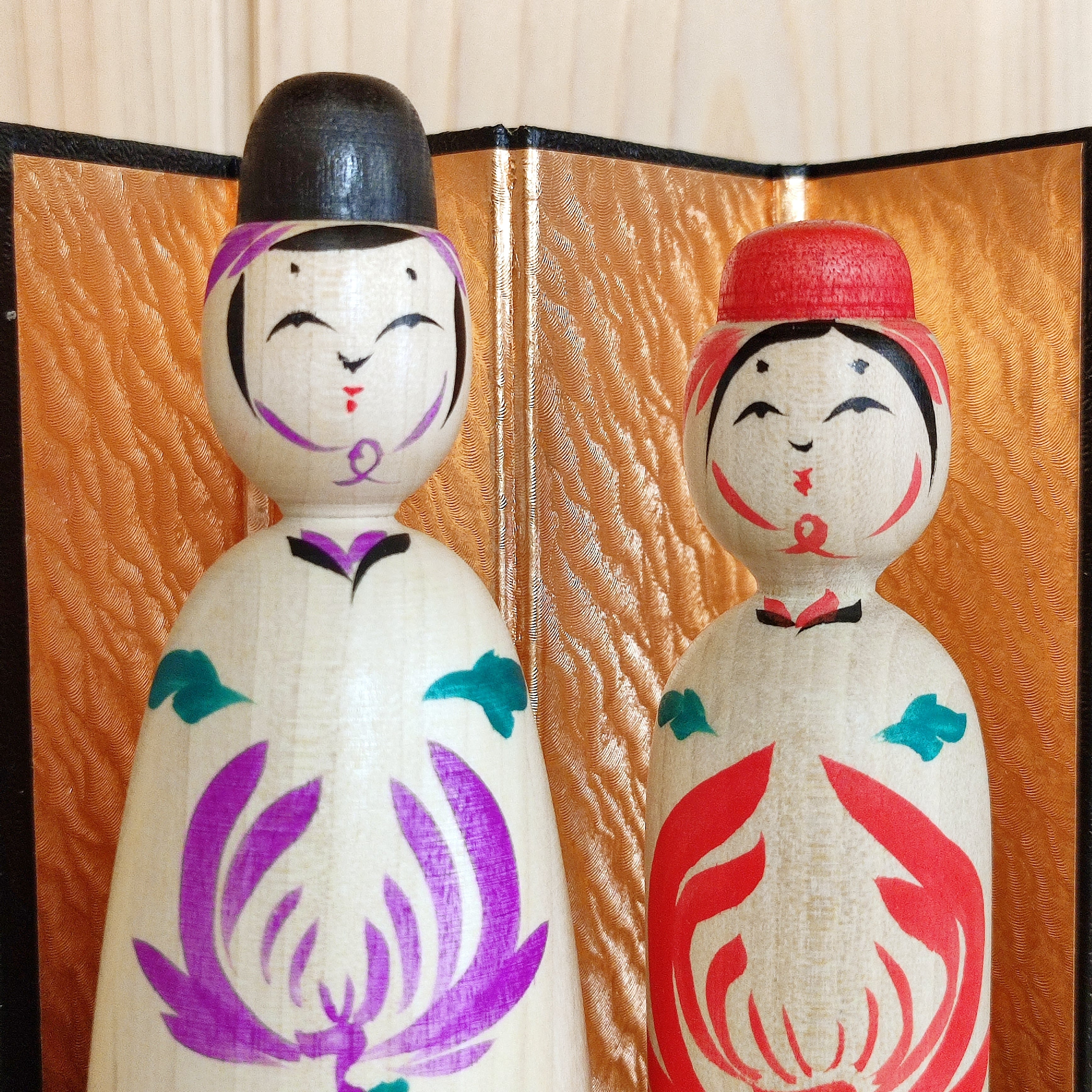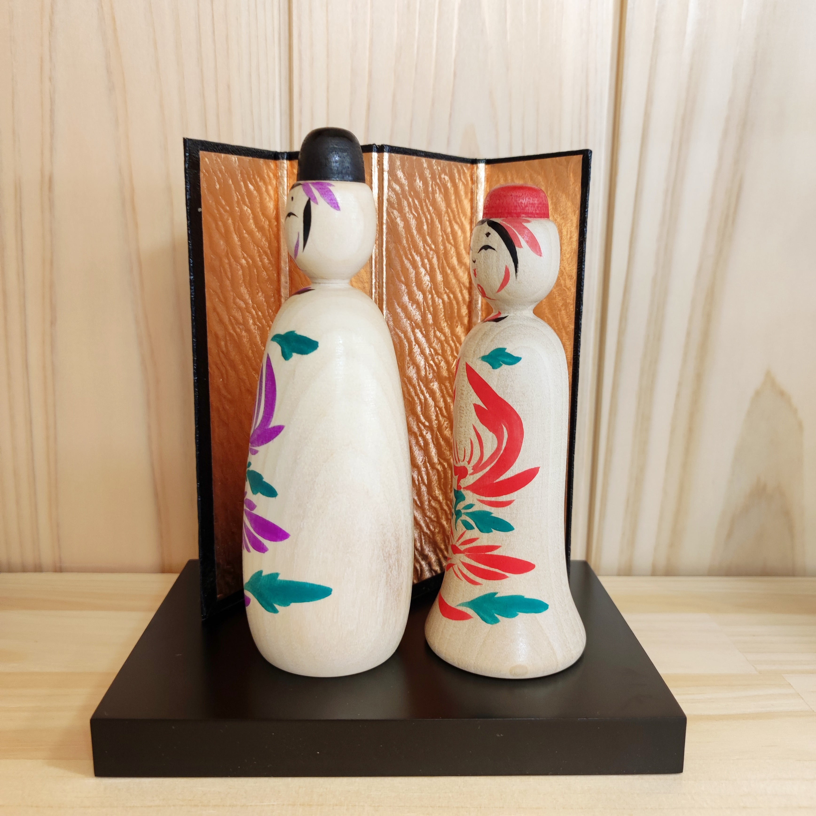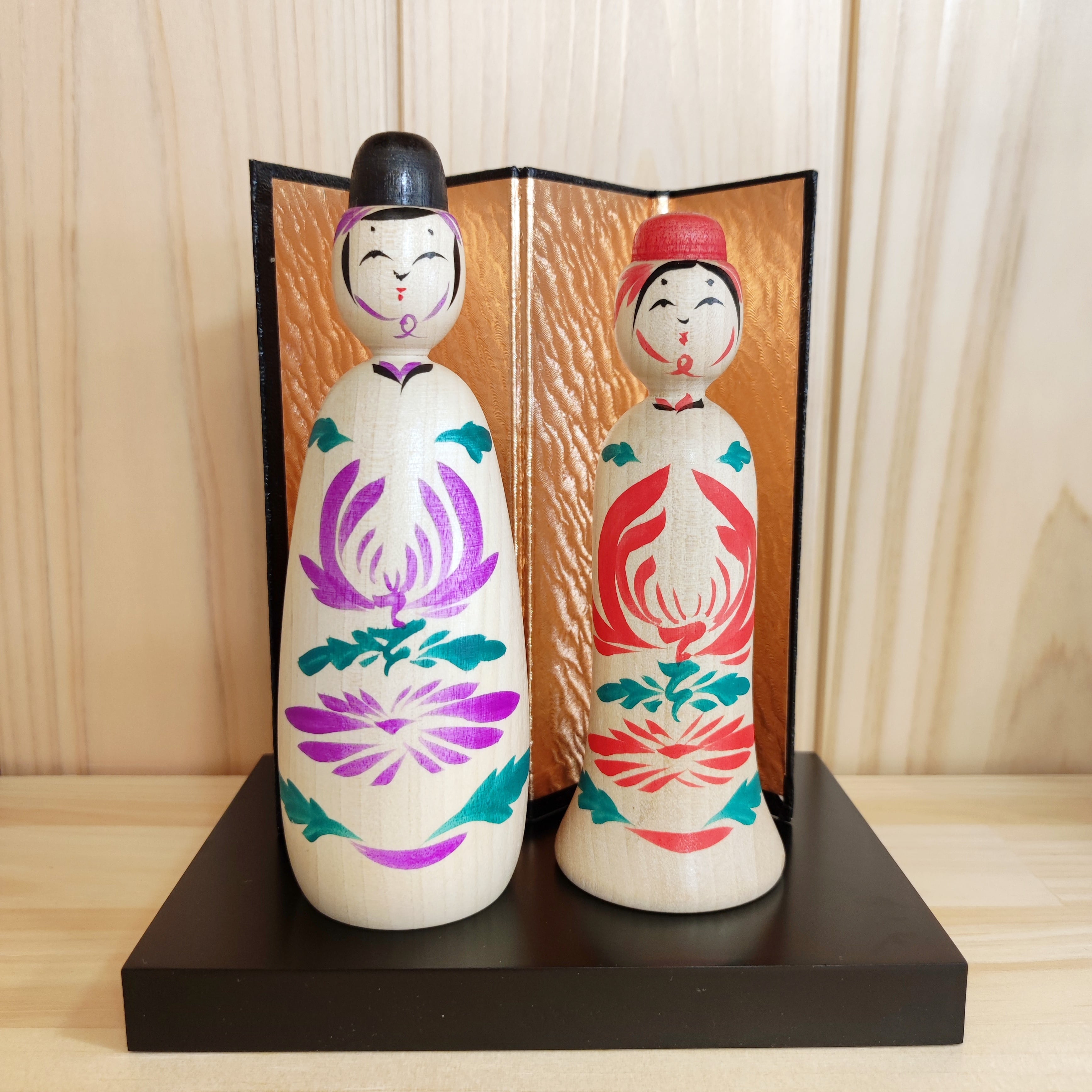 Since all kokeshi dolls are handmade by craftsmen, the grain and coloring of each kokeshi doll differs from one another.